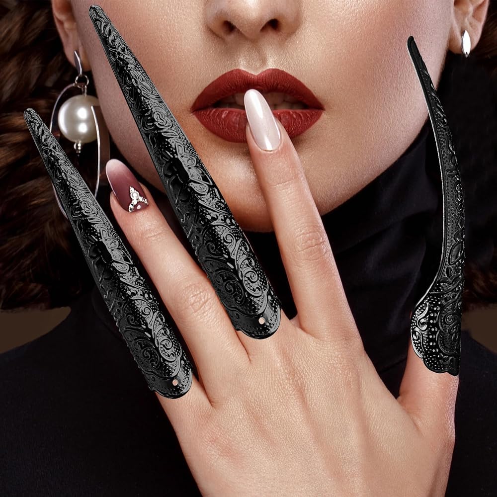 Premium Material: These fingertip claw nail rings are made of durable alloy material, the surface has a delicate pattern, smooth edges and light, Please leave it away from water when storing.