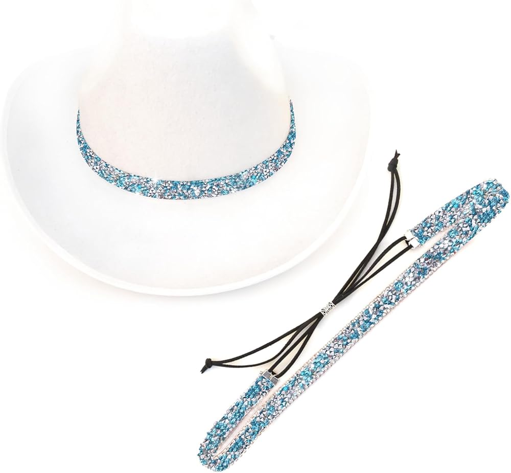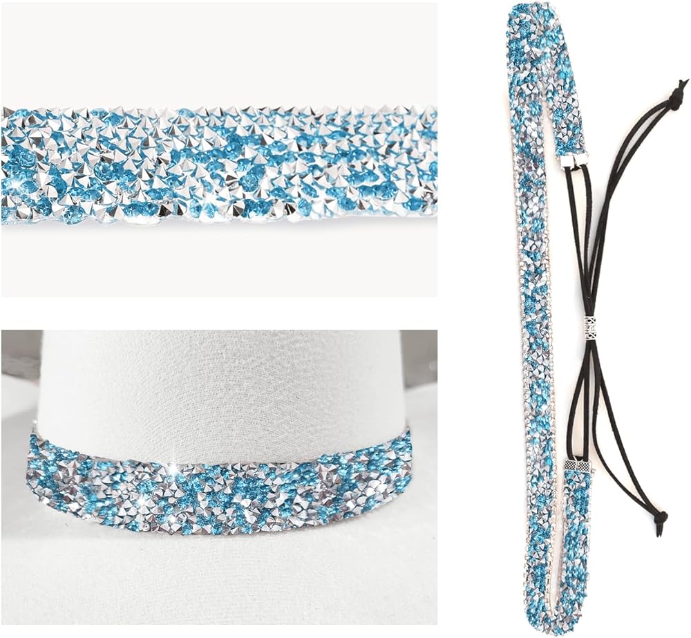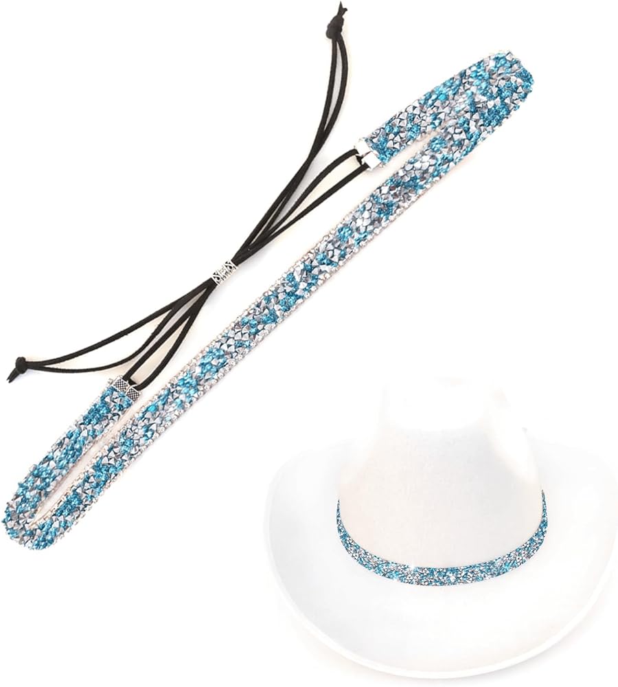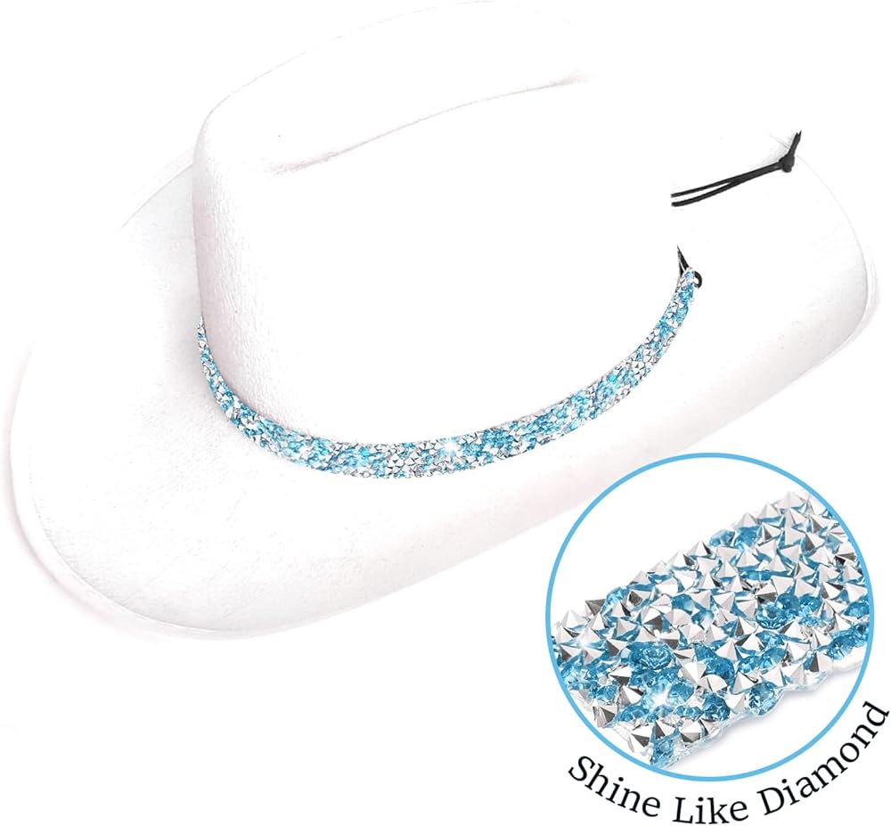 Blue Crystal Rhinestone Cowboy Hat Band: The dazzling effect of rhinestones attracts attention, making you the center of attention whether at social gatherings, parties, or in daily life.