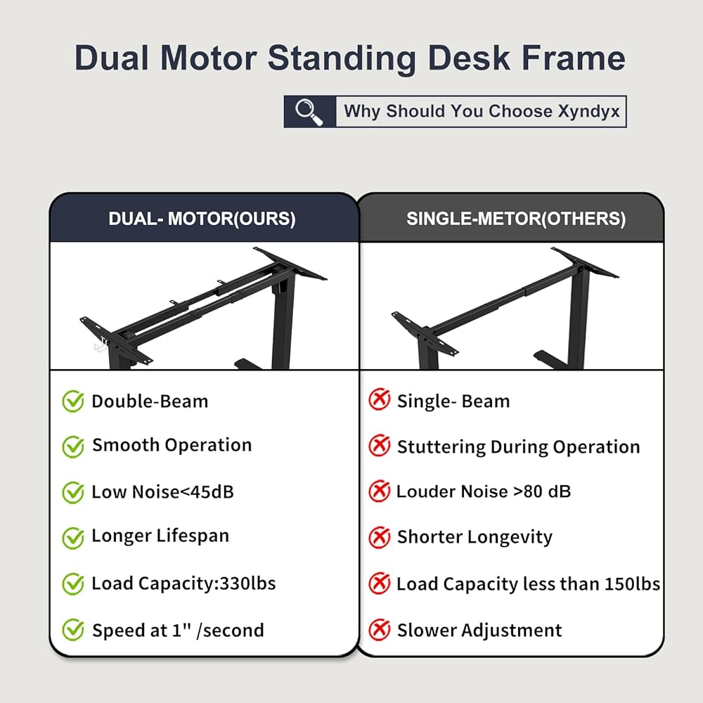 【ثبات فائق】----- القضبان المتقاطعة المزدوجة أكثر استقرارًا من القضبان المتقاطعة الفردية. تم اختبار ثبات طاولات الرفع Xyndyx ومتانة المحركات أكثر من 20000 مرة لضمان حصولك على منتج عالي الجودة يدوم طويلاً.