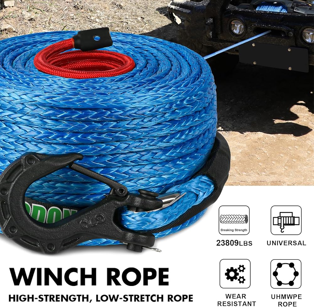 متعددة الاستخدامات: تم تصميمه لمجموعة متنوعة من الروافع التي تتراوح من 9000 رطل إلى 14500 رطل، هذا الحبل الاصطناعي هو المرشح المثالي لسيارات الدفع الرباعي الخاصة بك على الطرق الوعرة وسيارات الدفع الرباعي وما إلى ذلك.