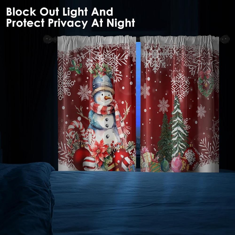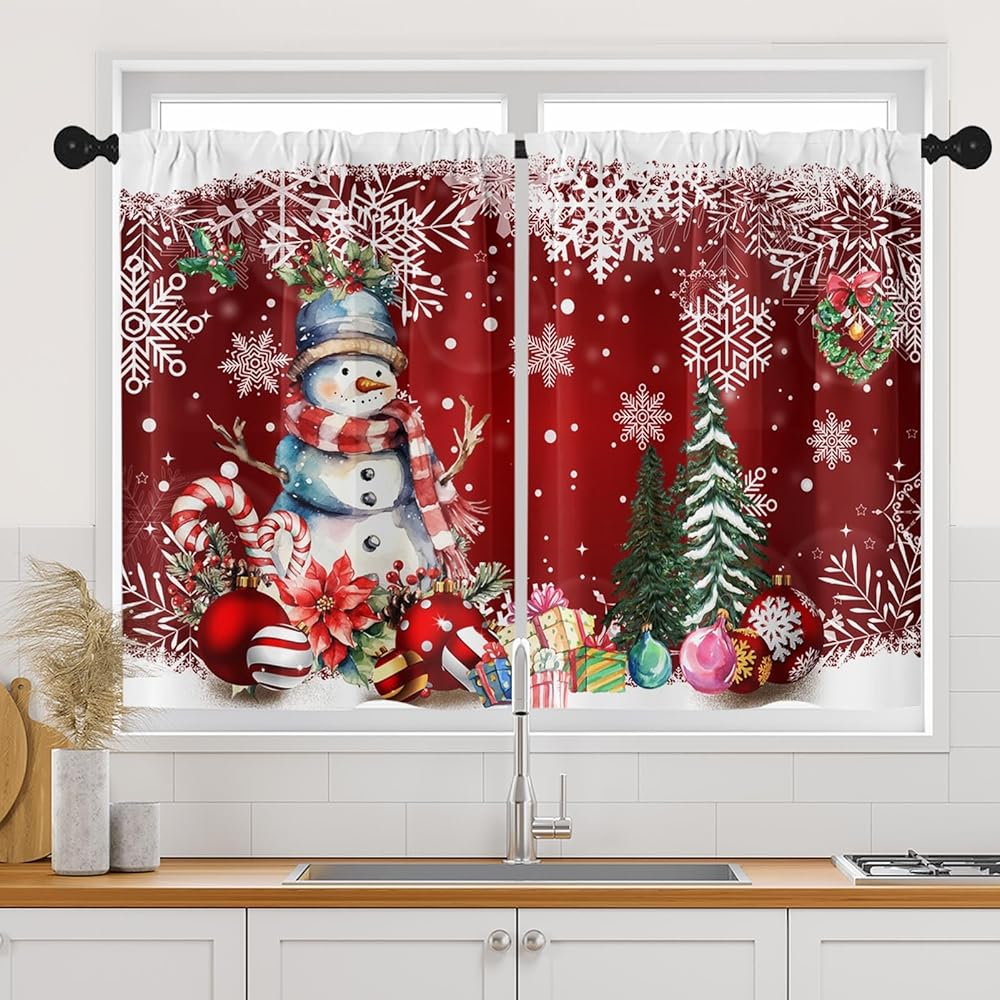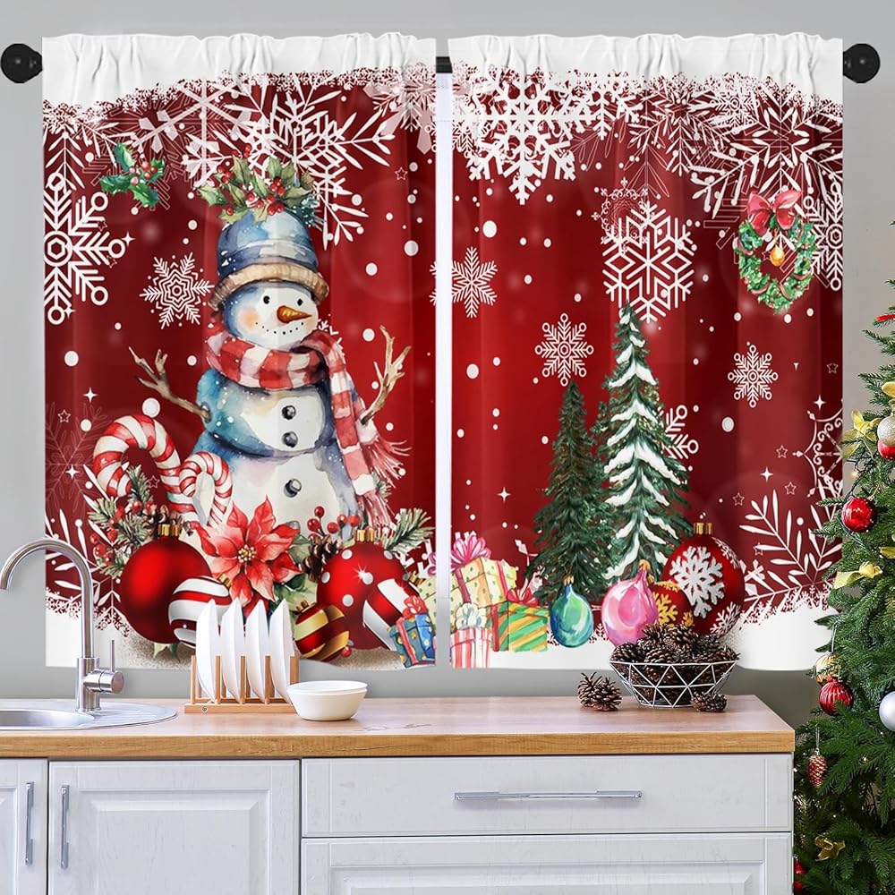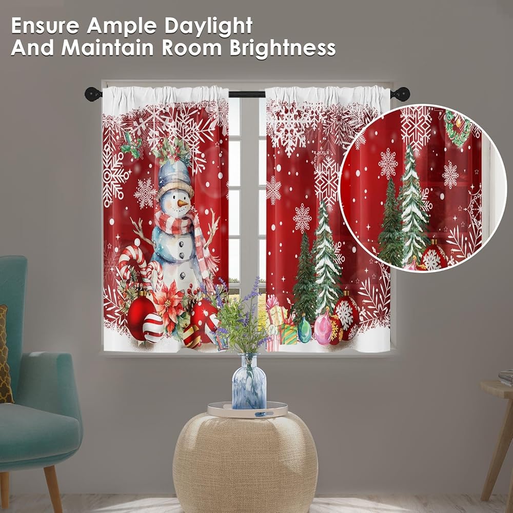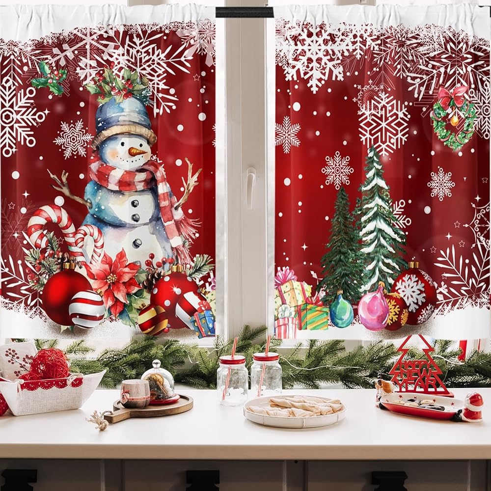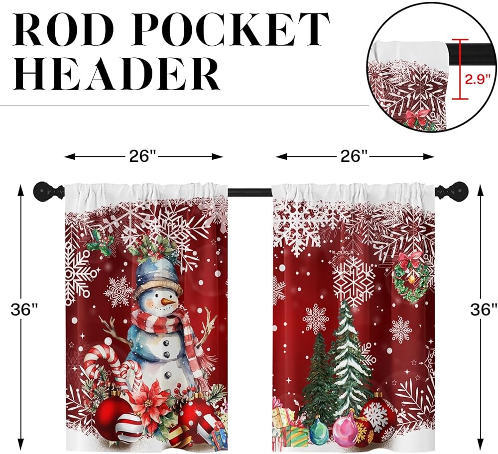 ستائر نافذة المطبخ في عيد الميلاد على مجموعة من 2 ، سوداء قضيب الشتاء الجيب الستائر القصيرة من الدرجة الأولى ، عيد ميلاد سعيد ديكور المطبخ الصغير (26 × 36 بوصة)