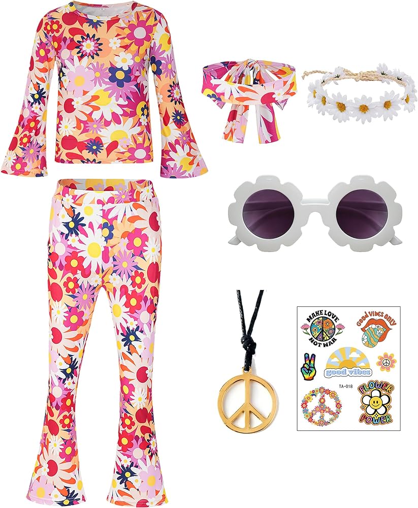 Halloween Cosutme for Girls 2024, 60s 70s Decades Hippie Disco Outfits for Kids