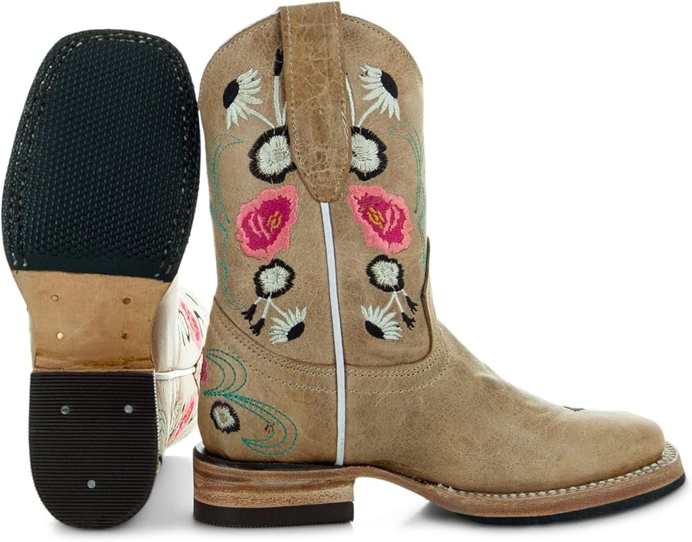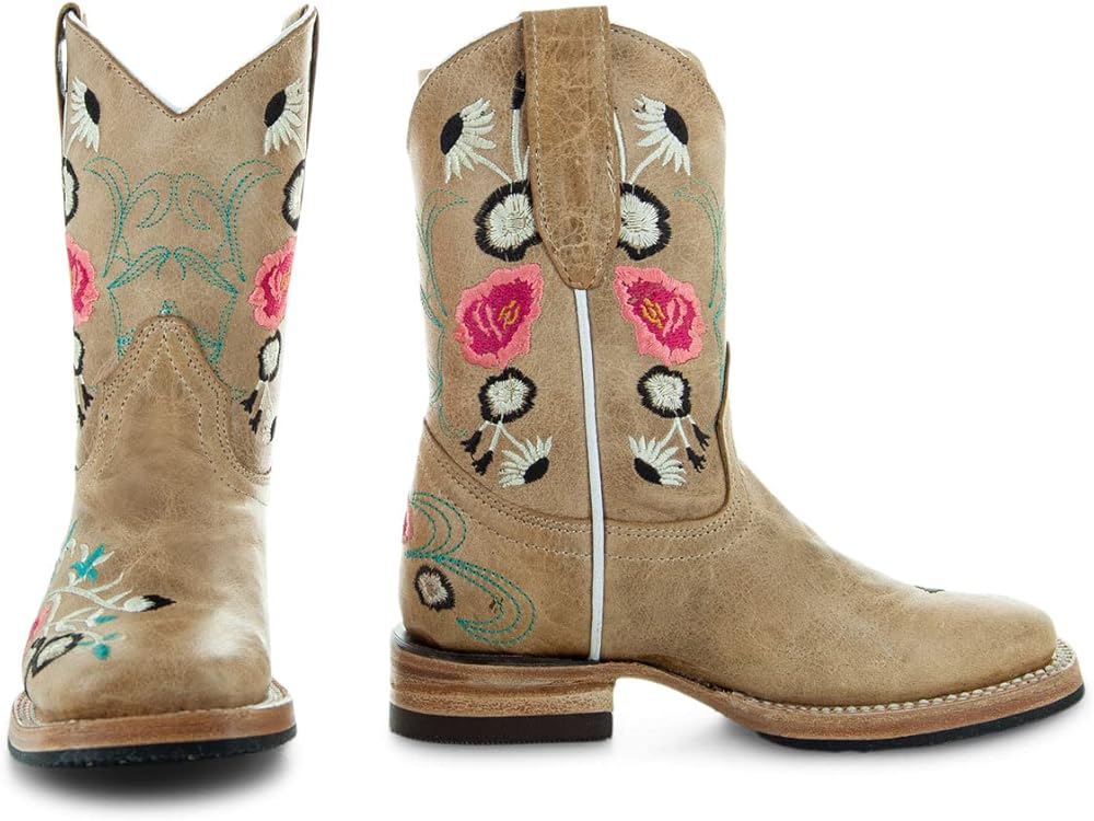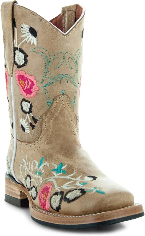 Soto Boots has the perfect cowboy boots to add a touch of style for the little country girl in your life. The beautiful floral embroidery on the shaft and foot, finished with a square toe design, makes this boot a work of art. No matter what your child gets up to, these high-quality boots will stand up to the test. These boots are perfect for kids who are always on the go and need reliable footwear that they can count on. With Goodyear welt construction and a double stitched sole, these boots are made with durability in mind. The leather sole with rubber heel cap prevents slips. These boots are not only chic with their bright contrasting embroidery, but also exceptionally comfortable. Your little one will be able to wear them all day without having any issues. The boot is soft and light, thanks o the genuine leather used throughout, as well as the leather lining and cushioned insole. The dual pull tabs make it easy to get the boots on and off, so your little girl can spend more time enjoying her day.