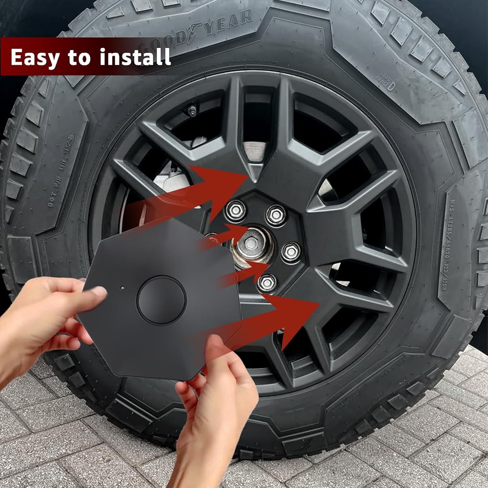 Rust Proof and Weather Resistant: The wheel hub centers are prone to rust if exposed prolonged. Our full coverage wheel hub caps are made to protect the screws on the truck's wheel hubs to prevent the metal components from water, mud and other liquids erosion.