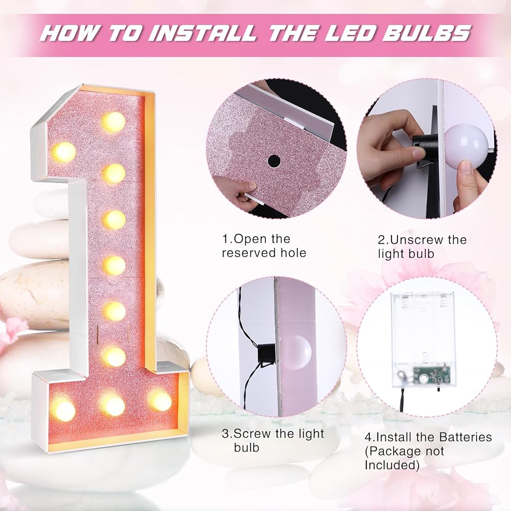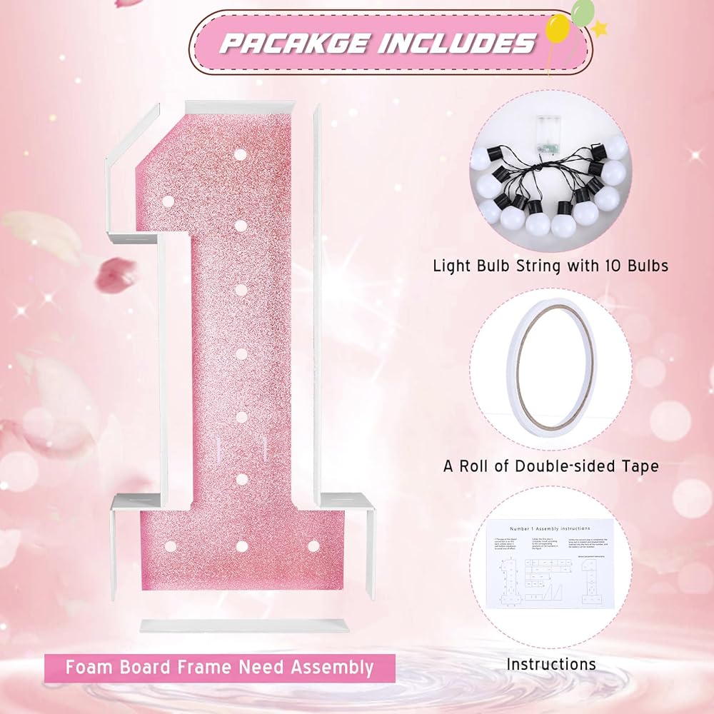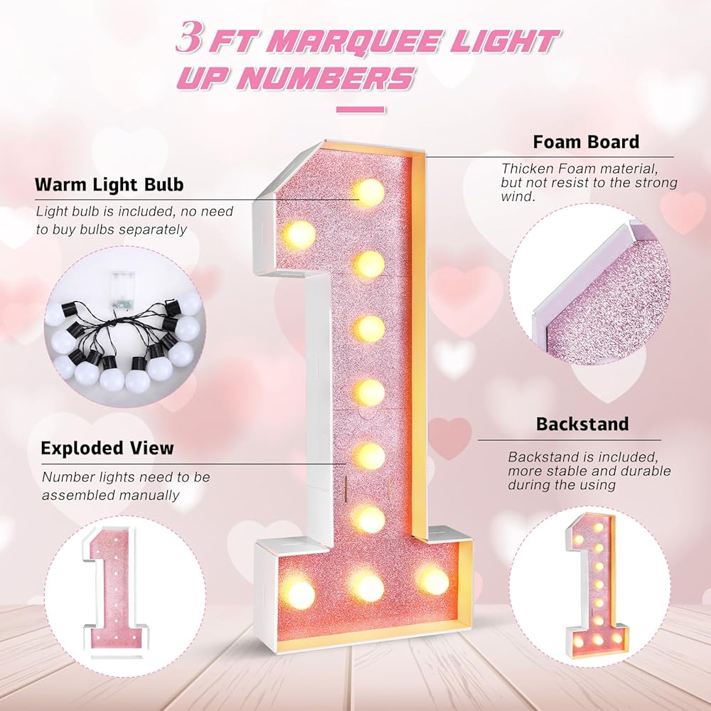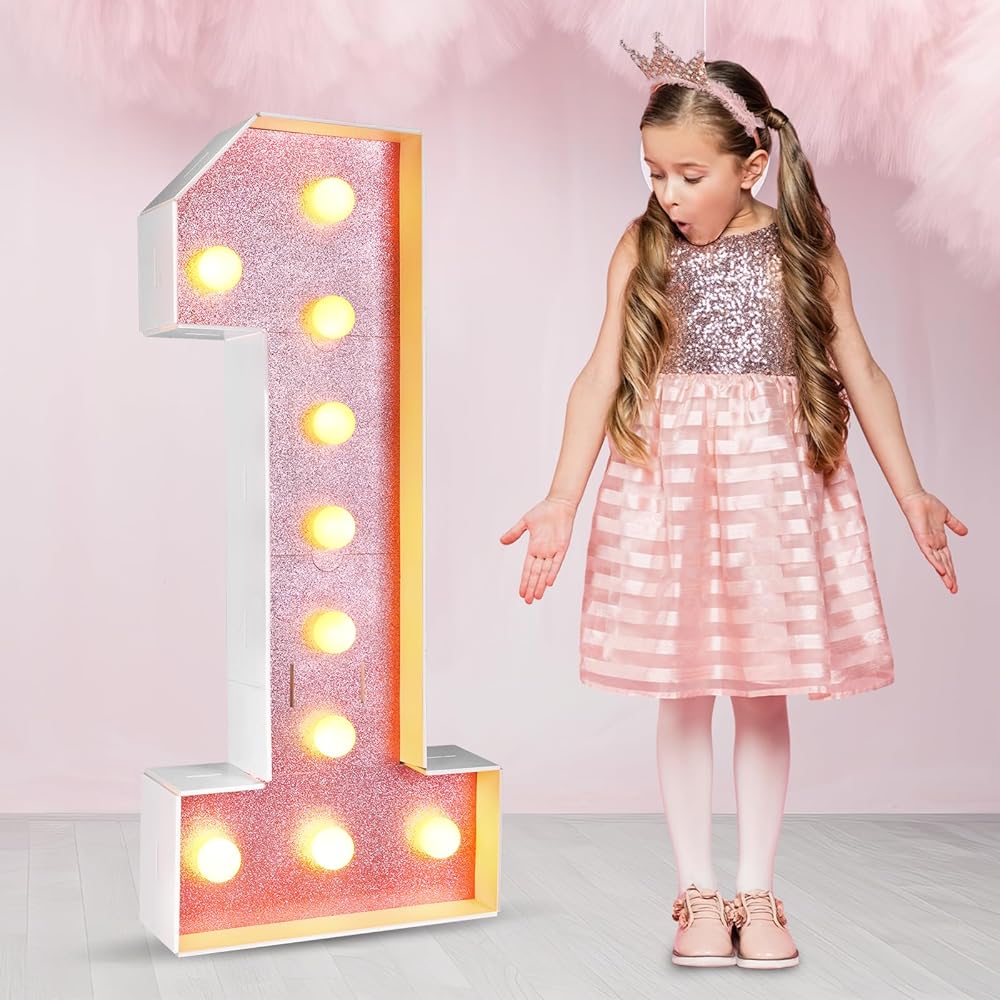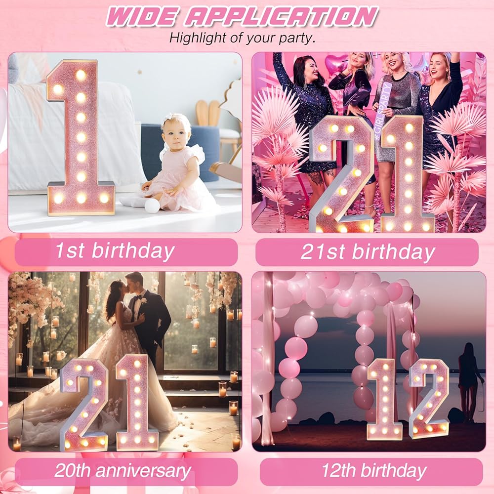 The glitter marquee number contributes to creating a shiny and cheerful atmosphere. Emphasizing your celebrations with lighted numbers ensures an unforgettable, joyful experience for your guests. Ideal for birthday decorations, these make your special moments truly enchanting.