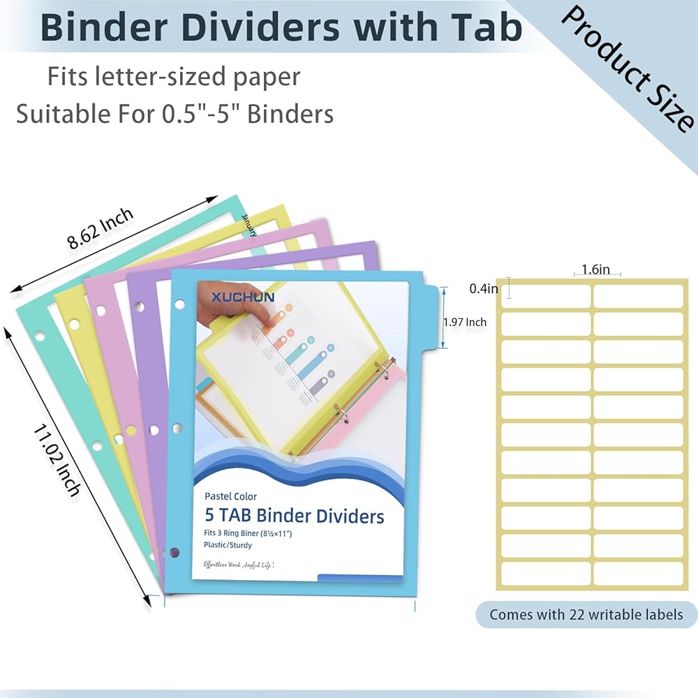 【ماذا في العبوة】: سوف تحصل على 6 مجموعات من فواصل المجلدات البلاستيكية المكونة من 8 عروات، مصحوبة بـ 44 ملصقًا قابلاً للتخصيص في كل مجموعة. وهذا يوفر فرصة كبيرة لتكييف نظام مؤسستك بدقة مع متطلباتك.