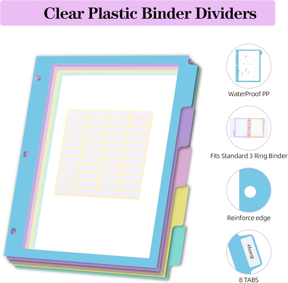 【فواصل بلاستيكية ذات رؤية واضحة】تتميز فواصل المجلدات الخاصة بنا بنافذة شبه شفافة في المنتصف، محاطة بحدود صلبة، مما يعزز الجمال والوظيفة لسهولة عرض المحتوى ووضع العلامات في أي مكان.