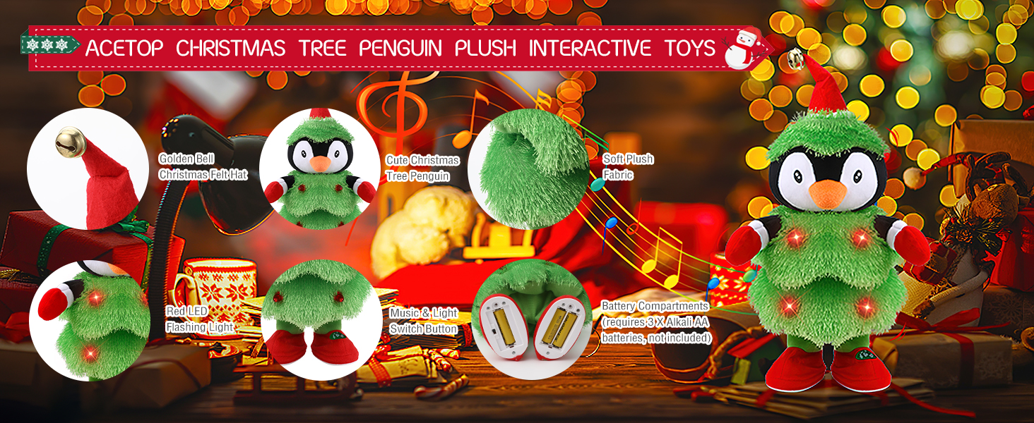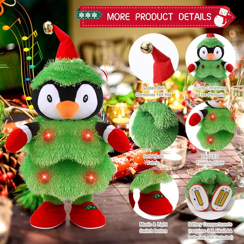 ♬ لعبة شجرة عيد الميلاد الراقصة: قم بتشغيل المفتاح، يمكن للعبة عيد الميلاد الكهربائية هذه أن تهز جسدها على الإيقاع، تمامًا مثل رقص شجرة عيد الميلاد اللطيفة، مما يمنحك وقتًا ممتعًا في عيد الميلاد. يمكن أن يساعدك شكل البطريق الملون والرقيق والتعبير المفعم بالحيوية على تخفيف التوتر عندما تشعر بالاكتئاب.