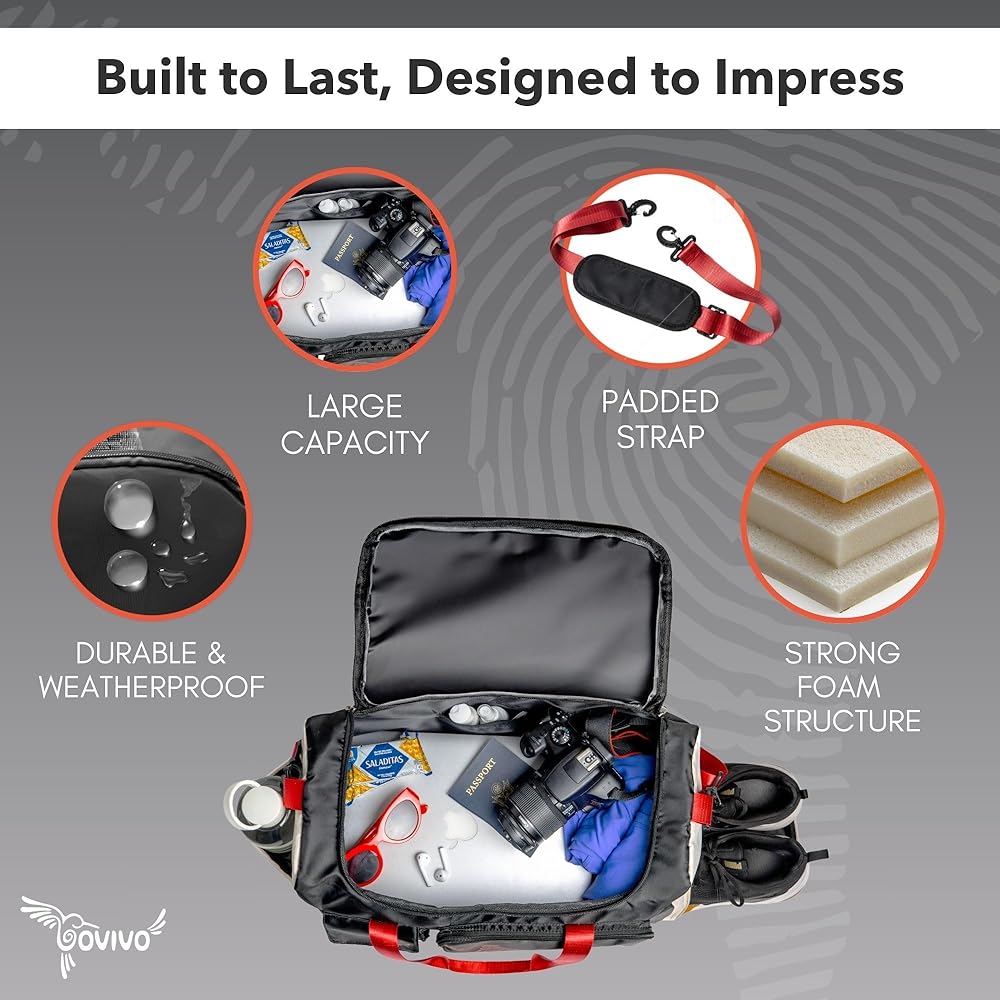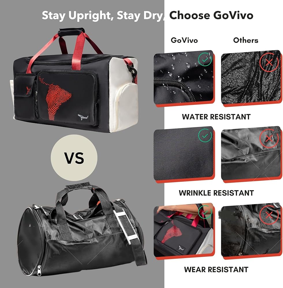 أطلق العنان لقدراتك مع هيكل GoVivo المقوى: يضمن الدعم الرغوي الإضافي لحقيبة عطلة نهاية الأسبوع الخاصة بنا الحفاظ على شكلها وتوفير متانة فائقة. اشعر بالفرق مع حقيبتنا الرياضية الصغيرة