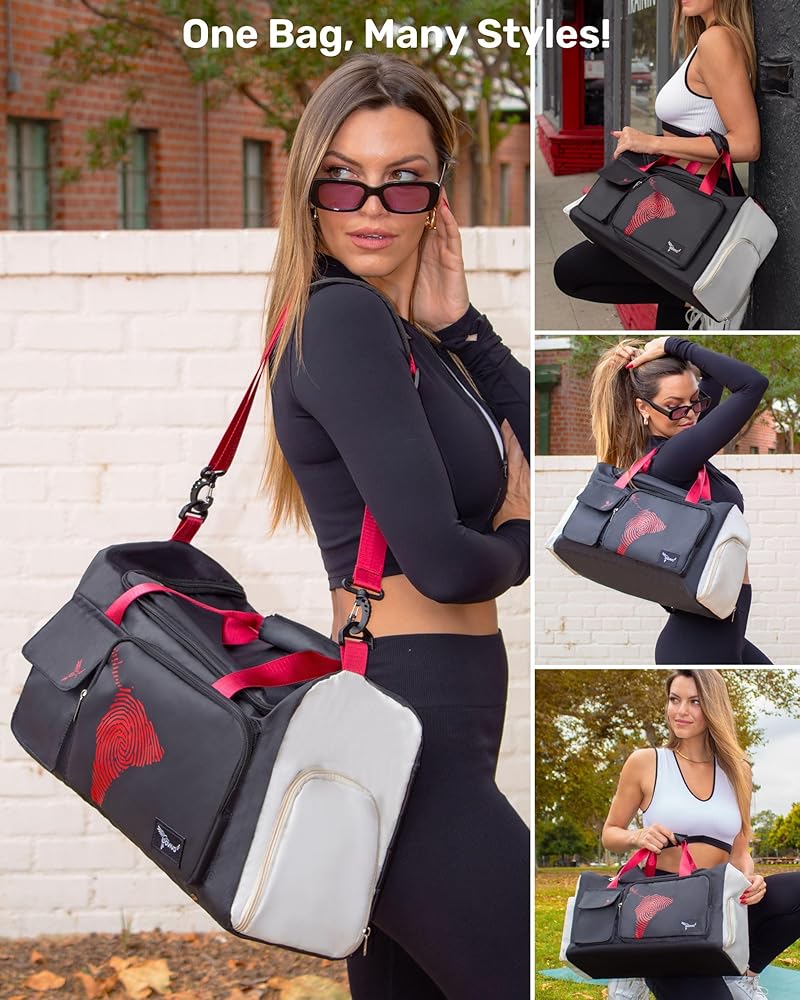 السفر بأناقة، والحمل بثقة: إن غلاف العربة والتصميم خفيف الوزن يجعلان حقائب الصالة الرياضية اللطيفة الخاصة بنا الرفيق المثالي لرحلاتك. اختر حقيبة الجيم الخاصة بنا مع حجرة الأحذية للنساء وحقيبة الجيم للسيدات.