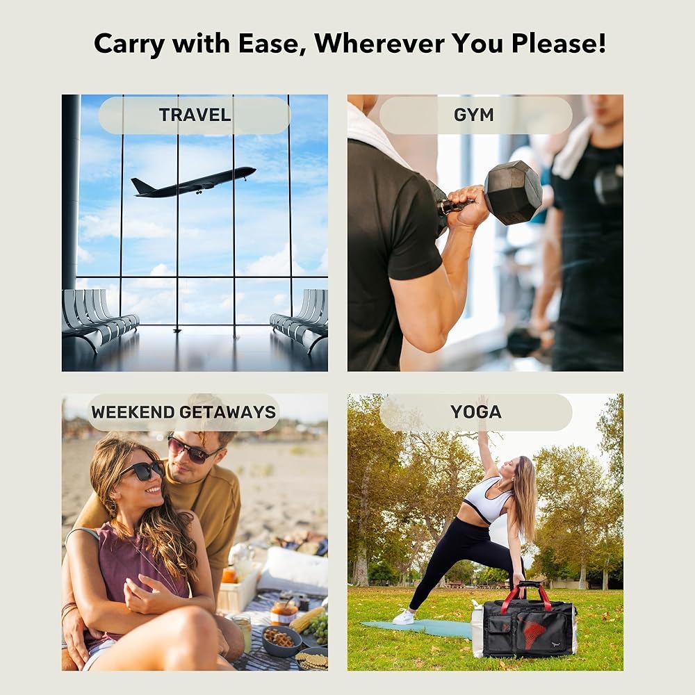 مواد متينة ومقاومة للماء: احمِ متعلقاتك من العناصر من خلال حقيبة التمارين الرياضية الصغيرة ذات الجودة العالية والمقاومة للعوامل الجوية. اختر حقيبتنا الليلية لعطلة نهاية الأسبوع