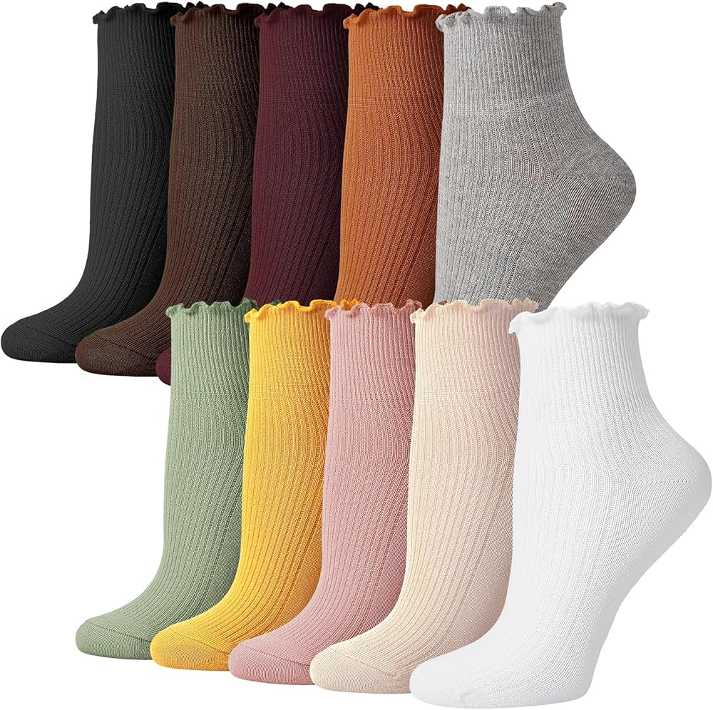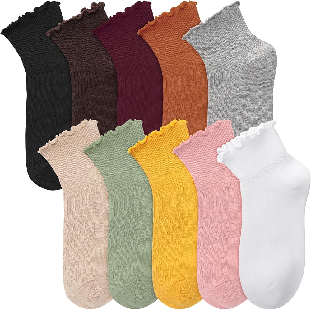 【هدية جوارب عصرية】عبوة من 10 أزواج من جوارب الكاحل من الدانتيل، اختيار مثالي للهدايا. هدية للأم والأخت والفتيات والصديقة. مثل هدايا عيد الأم، هدايا عيد الحب، هدايا عيد الميلاد، هدايا عيد الميلاد، هدايا العام الجديد