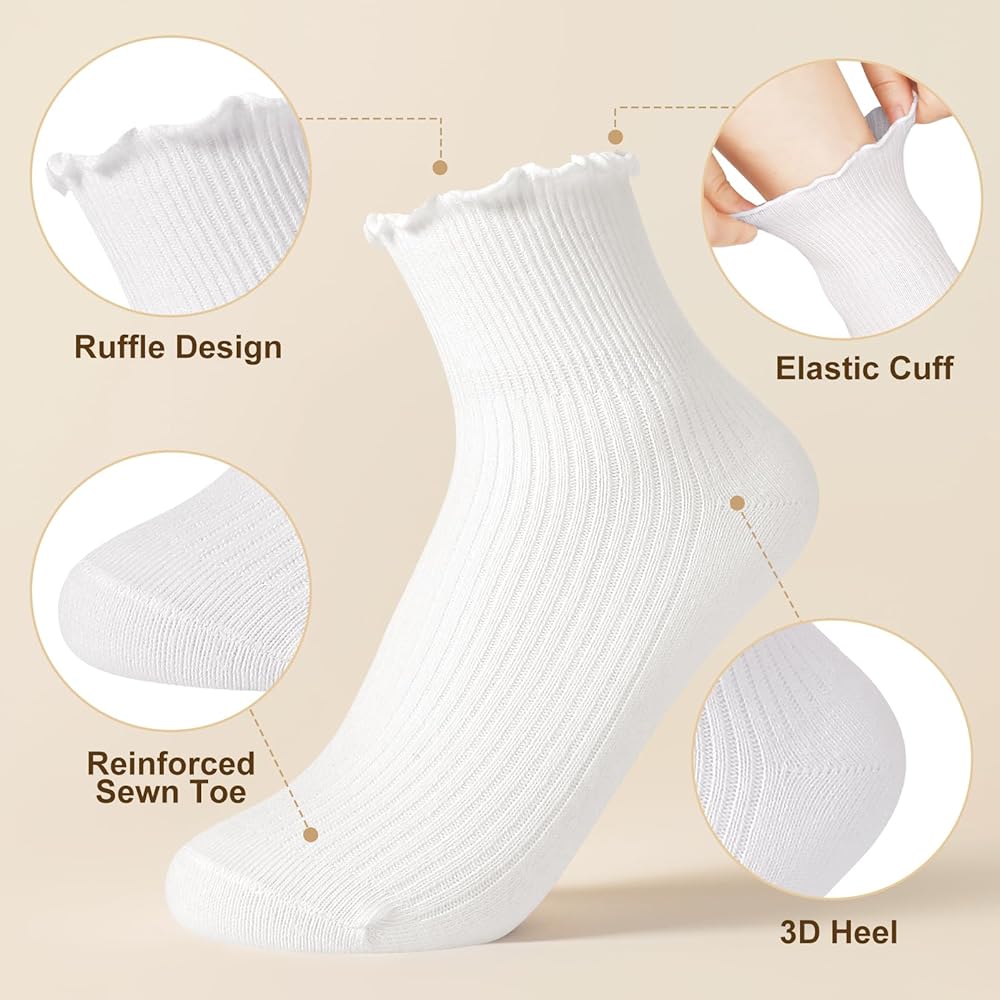 【جوارب قطنية مكشكشة】جوارب الخريف هذه مصنوعة من 78% قطن، 16% بوليستر، 6% ألياف لدنة. تحافظ على شكلها، ولا تنزلق وتتناسب بشكل مريح دون أن تكون مشدودة أو مقيدة، مما يحافظ على الراحة التي تستحقها قدميك والدعم الذي تحتاجه لتحقيق أقصى قدر من سهولة الارتداء.