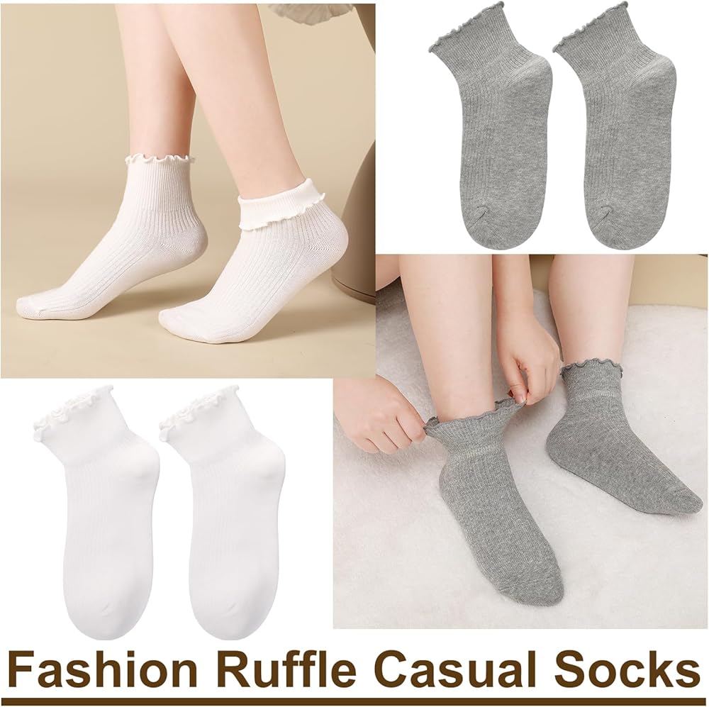 【جوارب لطيفة مكشكشة】 جوارب مكشكشة عصرية، جوارب كاحل نسائية بأساور دوارة مع زخرفة من الدانتيل، جوارب دائرية للسيدات لتتماشى مع ملابسك اللطيفة