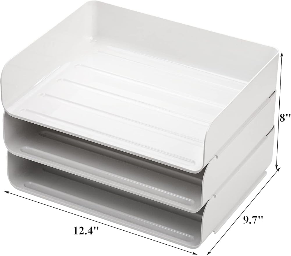 • مجموعتنا المكونة من 3 صواني ورق بيضاء قابلة للتكديس، يبلغ مقاس كل منها 12.4 سم طولًا × 9.7 سم عرضًا × 2.7 سم ارتفاعًا. عند تكديسها لتكون رفًا من 3 طبقات، يبلغ مقاسها 20.32 سم ارتفاعًا. حجم مثالي لك لتنظيم مساحة العمل الخاصة بك أو إنشاء مكان للموظفين لتبادل المستندات.