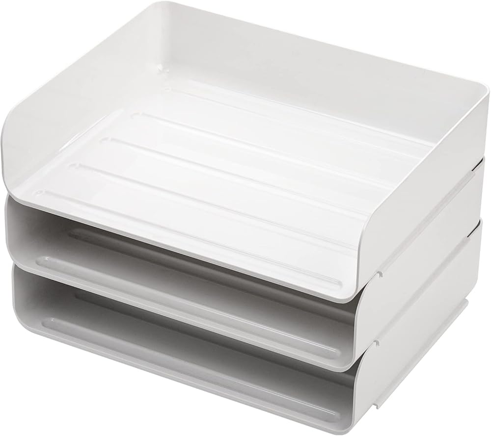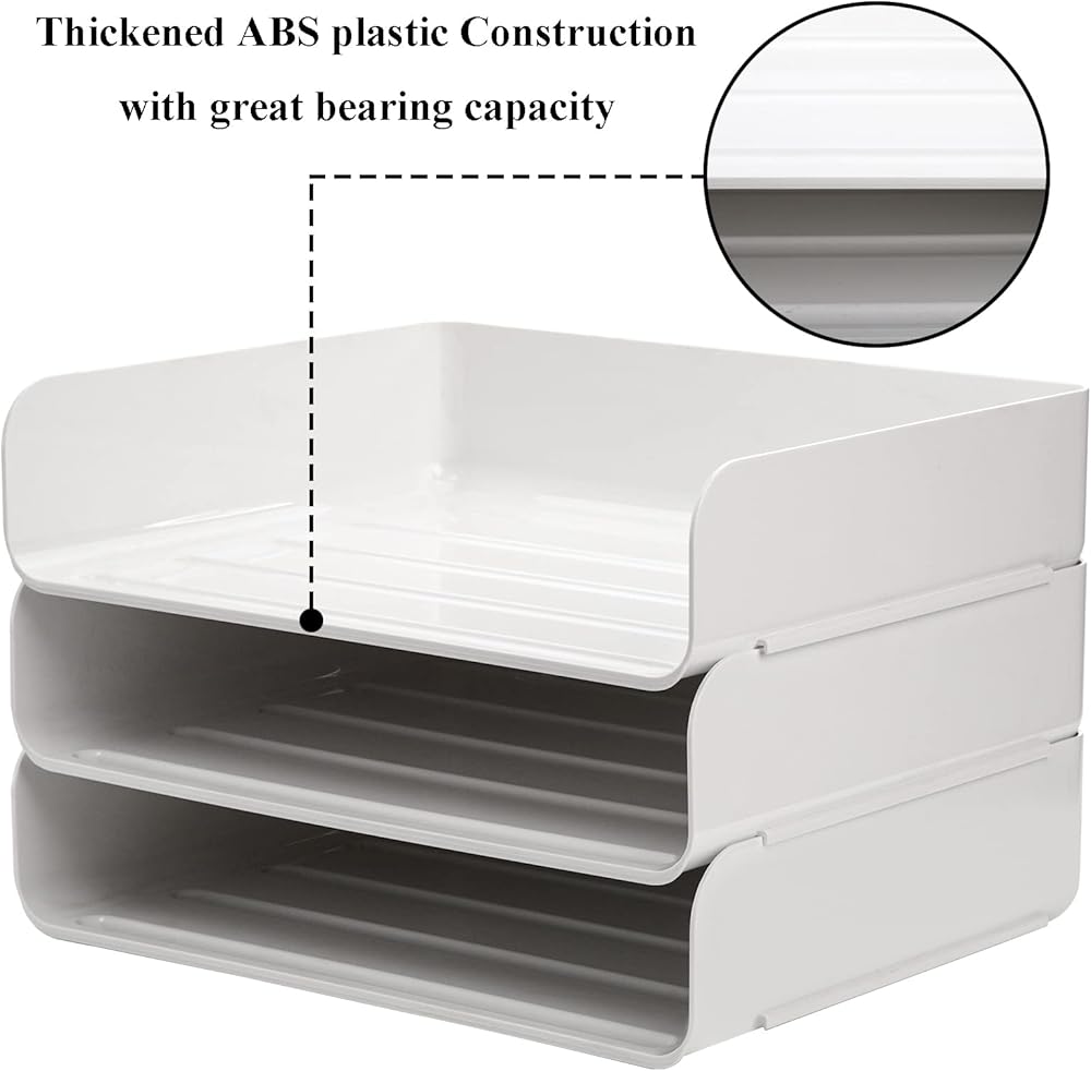 Okllen 3 عبوات من صينية الرسائل المكتبية القابلة للتكديس، منظم صينية المستندات الورقية من 3 طبقات، رف ملفات مكتب بلاستيكي أبيض لورق A4 والمجلات والإيصالات واللوازم المكتبية