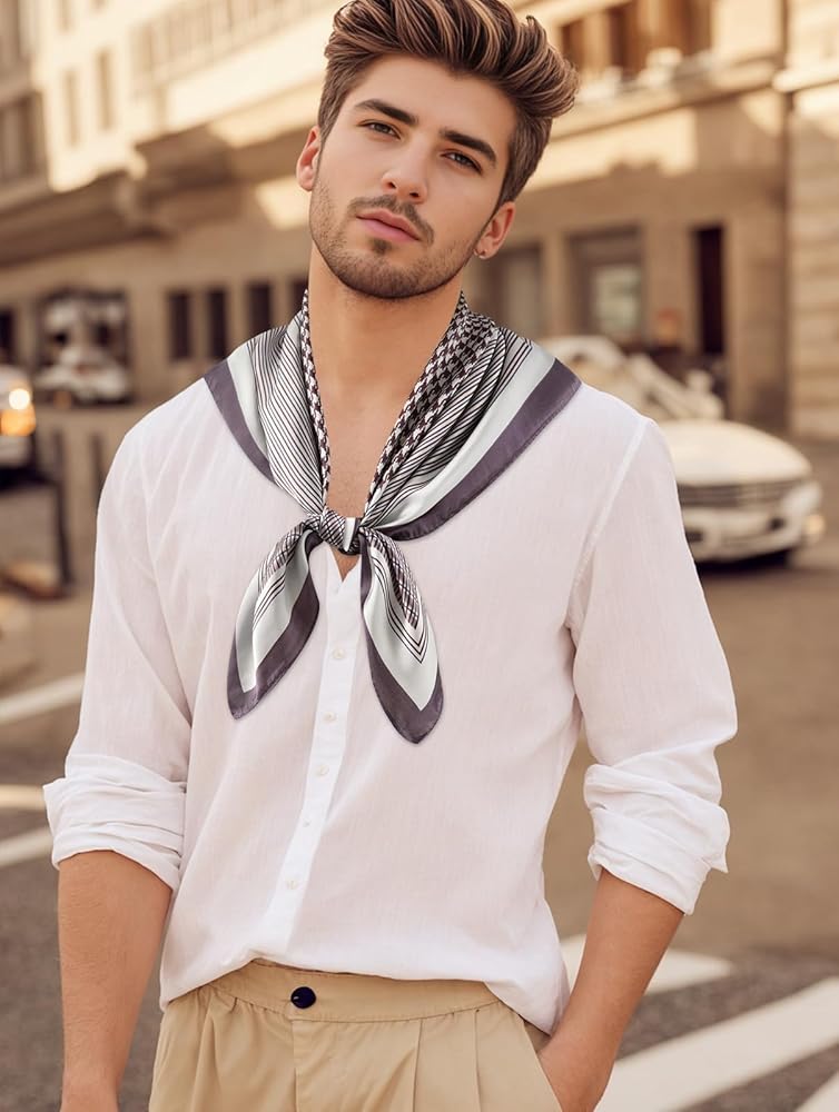 Multi Ways to Wear: traditional neckerchief, Parisian knot, European loop, ascot style, garden biking bandana, pocket square accent, head scarf hair wraps.