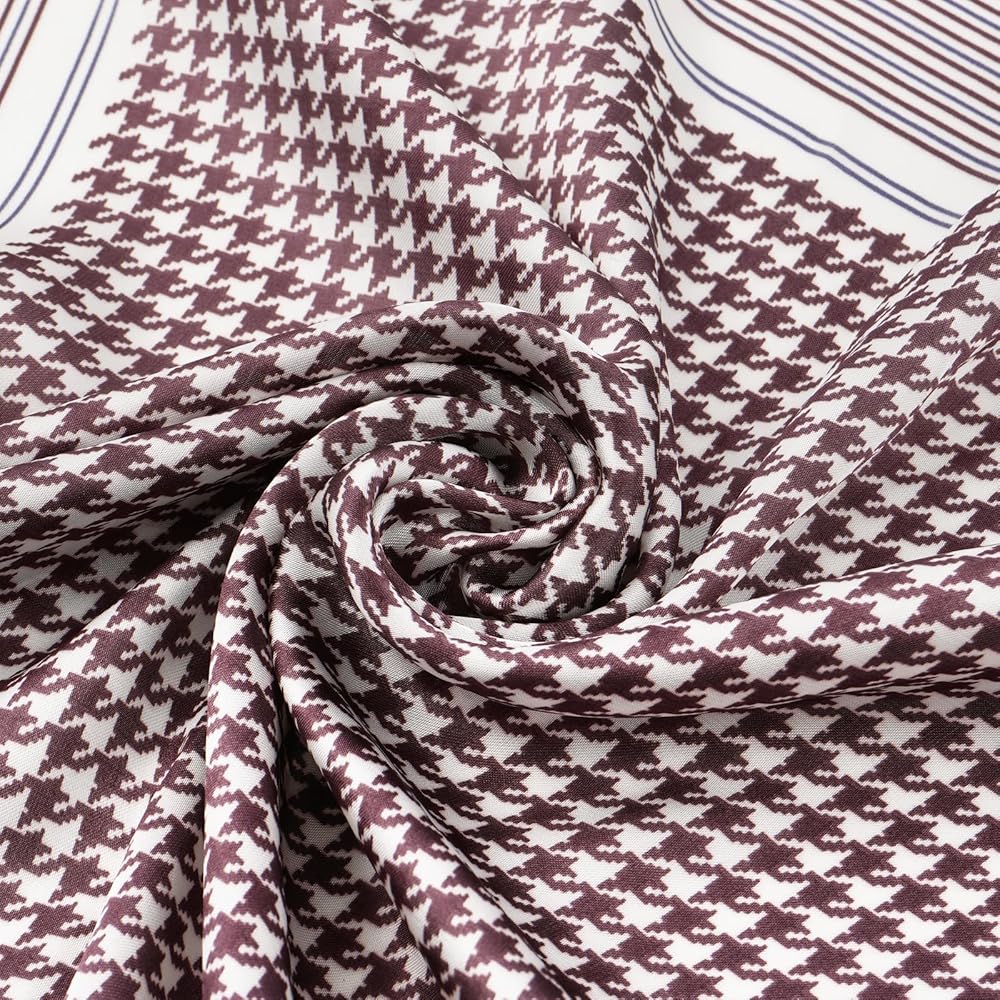 27 Inch Square Scarf: versatile dimension, not bulkylarge enough to tie in different ways.