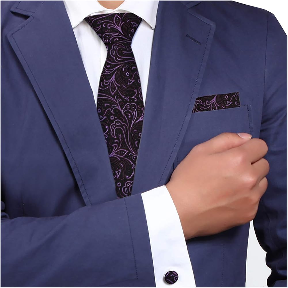 مصمم ربطة عنق سوداء للرجال هدية لصديقك باللون الأرجواني من Paisleys مجموعة أزرار أكمام على الطراز الإيطالي H5116 باللون الأسود