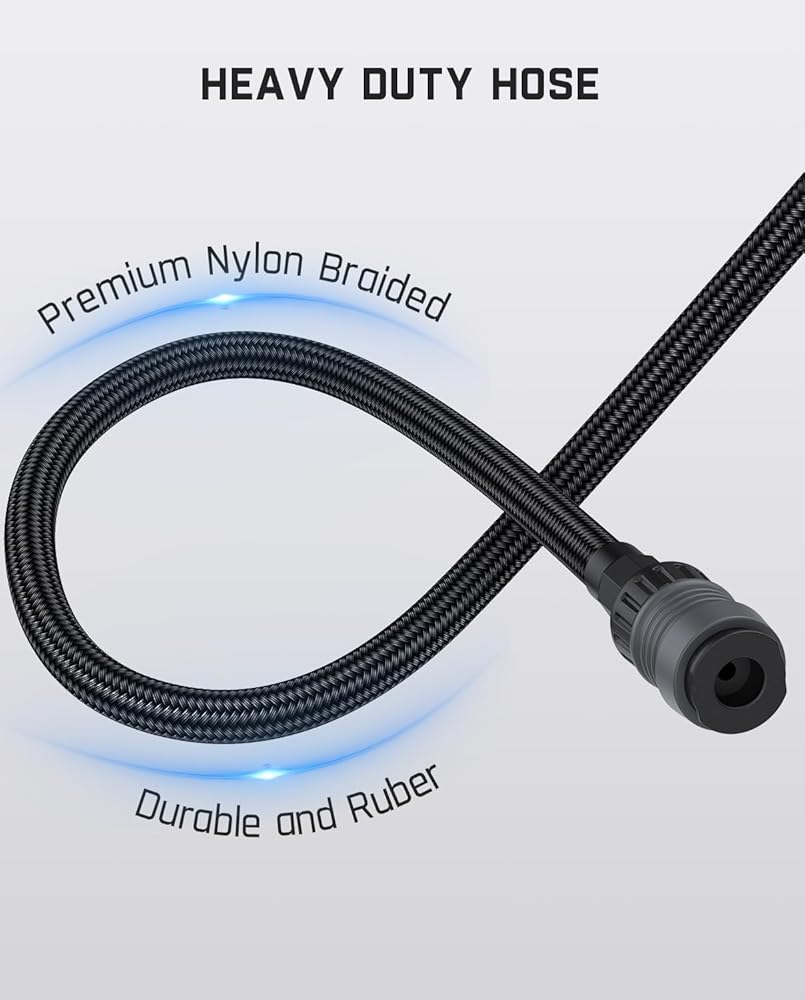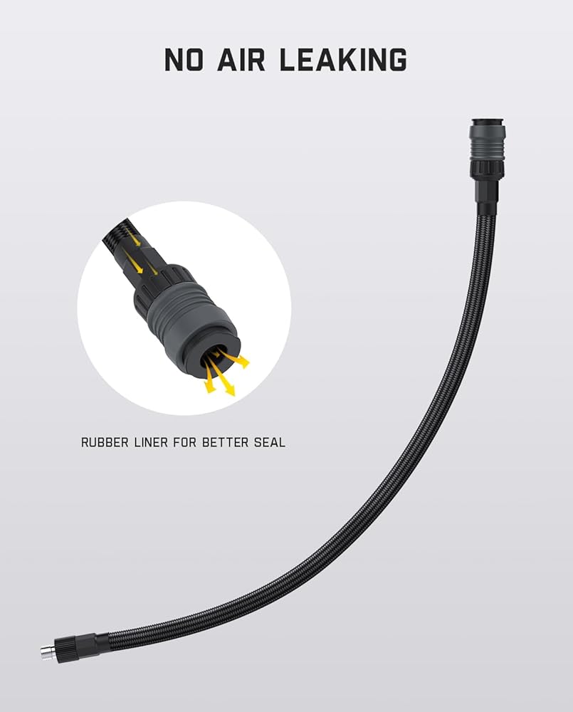 [عمر خدمة متين] خرطوم مضخة الهواء مصنوع من مادة مطاطية، مع نايلون فاخر مجدول من الخارج، مما يجعله أكثر ملمسًا وأكثر مرونة وأكثر متانة.