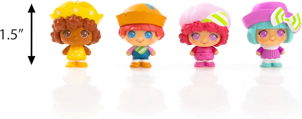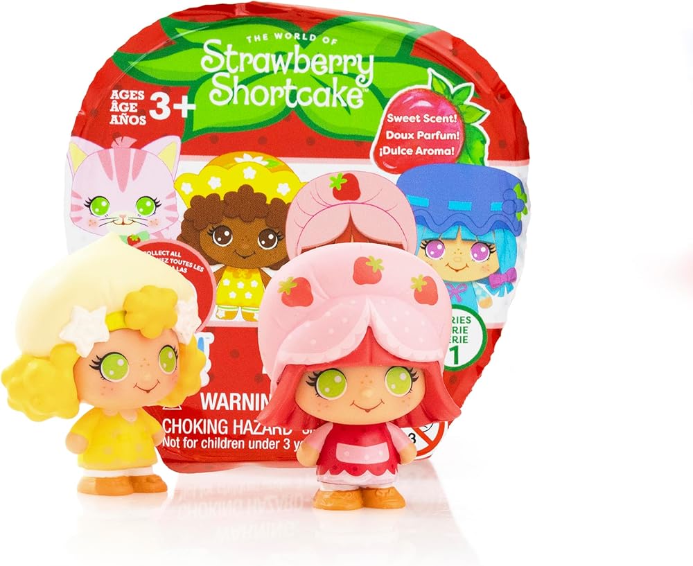 Introducing your new addiction! Strawberry Shortcake Cheebee Mini Figures by TLS Toy – the cutest and sweetest addition to any collector's shelf! These adorable sweet smelling 1.5-inch micro collectible figures bring the beloved characters of Strawberryland to life in a fun and compact size. Infused with delightful, sweet scents reminiscent of the original Strawberry Shortcake items, these figures add an extra layer of sensory enjoyment. Twenty different Strawberry Shortcake characters to collect, each with their unique charm and vibrant colors, you'll enjoy endless excitement in your collecting journey. Packaged in a strawberry-shaped "pudding cup" blind packaging, each cup contains 2 surprise figures, adding an element of mystery and delight. Who will you discover inside? Look out for the special editions: 3 rare figures and 3 ultra-rare figures that will make your collection truly stand out. These figures are so cute you'll want to eat them up, but please remember they are not candy!