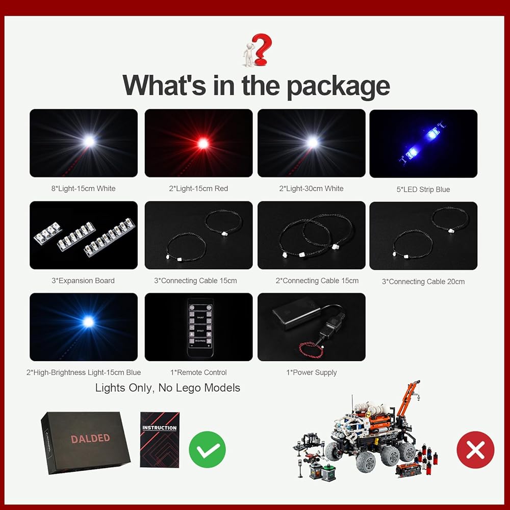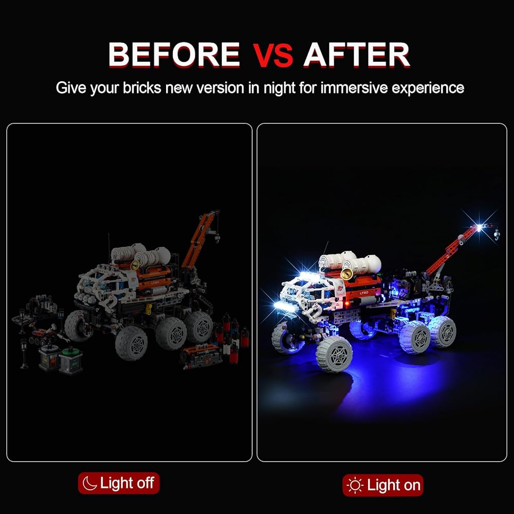 • 💡 [تصميم فريد] تم تصميم مجموعة مصابيح LED هذه خصيصًا لمجموعة Lego Technic Mars Crew Exploration Rover، دع نموذج Lego 42180 الخاص بك ينتقل من الظلام إلى النور ويصبح تحفة فنية نابضة بالحياة.