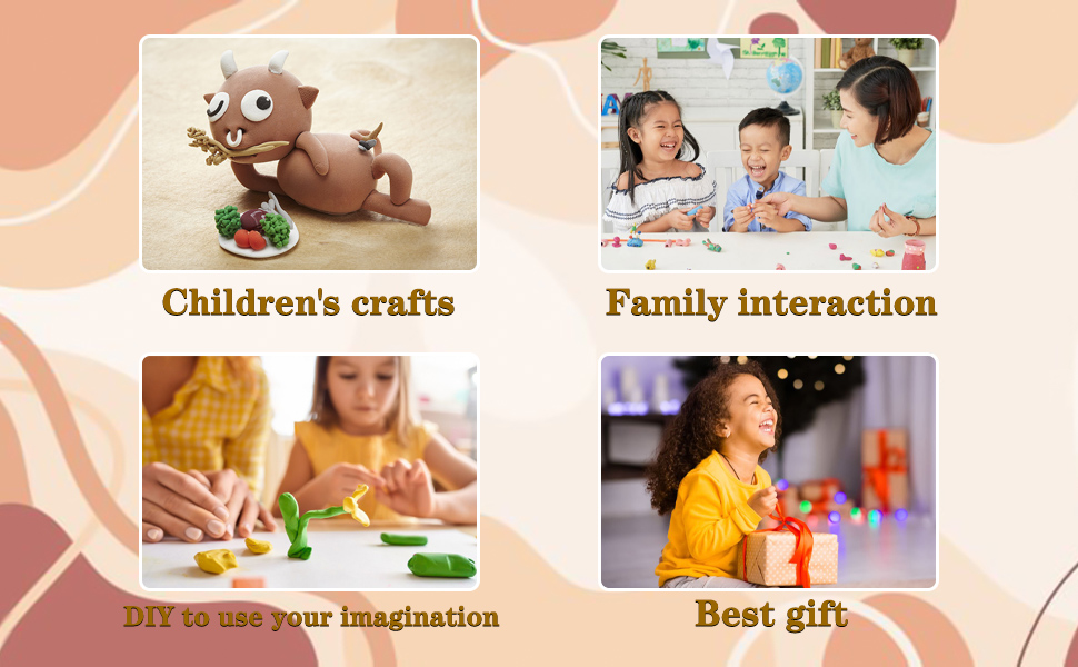 مجموعة واسعة من سيناريوهات الاستخدام: الطين الجاف بالهواء للأطفال مناسب للاستخدام العائلي وحفلات أعياد الميلاد والتفاعل بين الوالدين والطفل وغيرها من الأنشطة. يمكنك تقديمها كهدية لأقاربك أو أصدقائك الجيدين