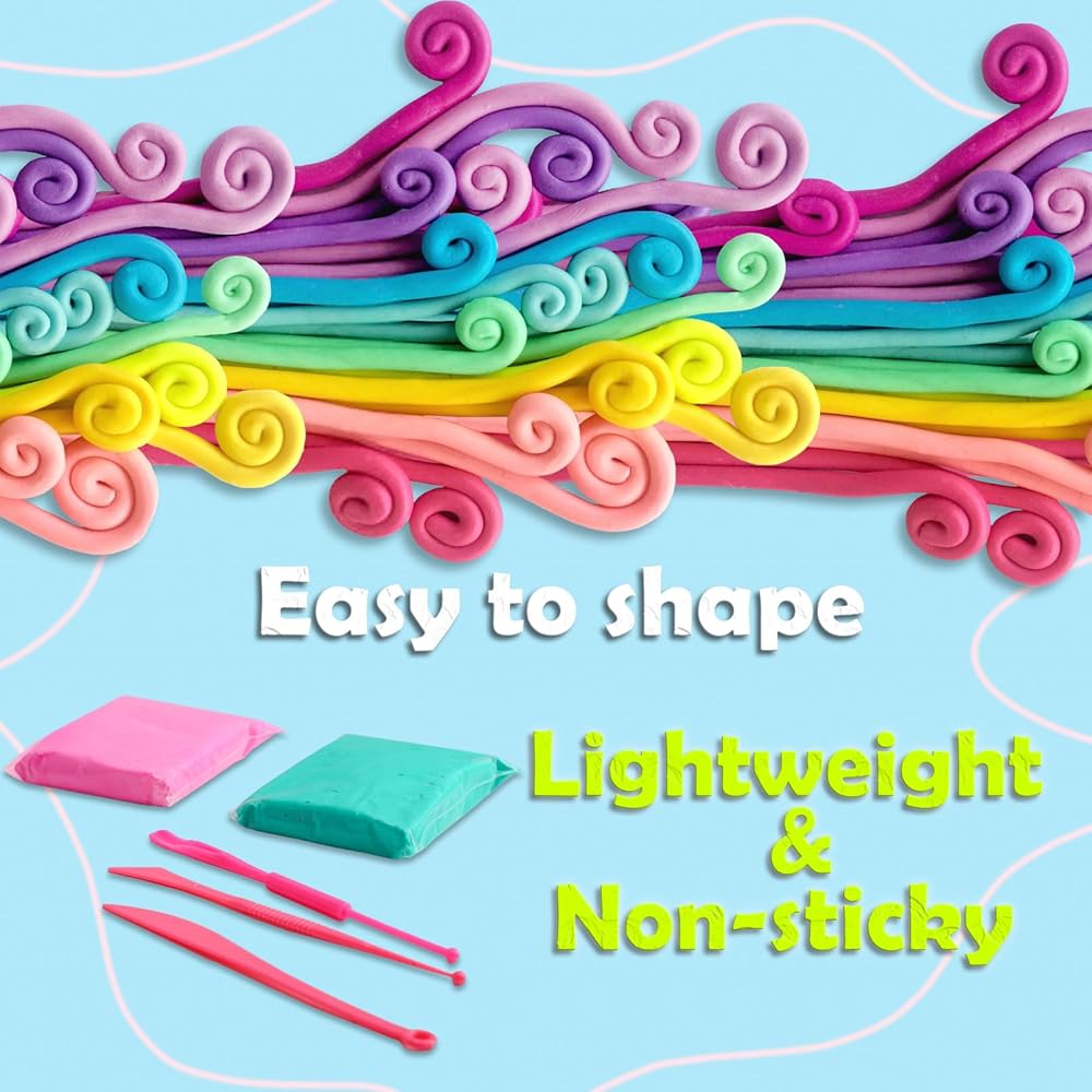 سهل التشكيل: الطين الفني مصنوع من مواد عالية الجودة، سهل التشكيل وناعم الملمس. يمكن للأطفال تشكيلها بأي شكل يمكنهم تخيله