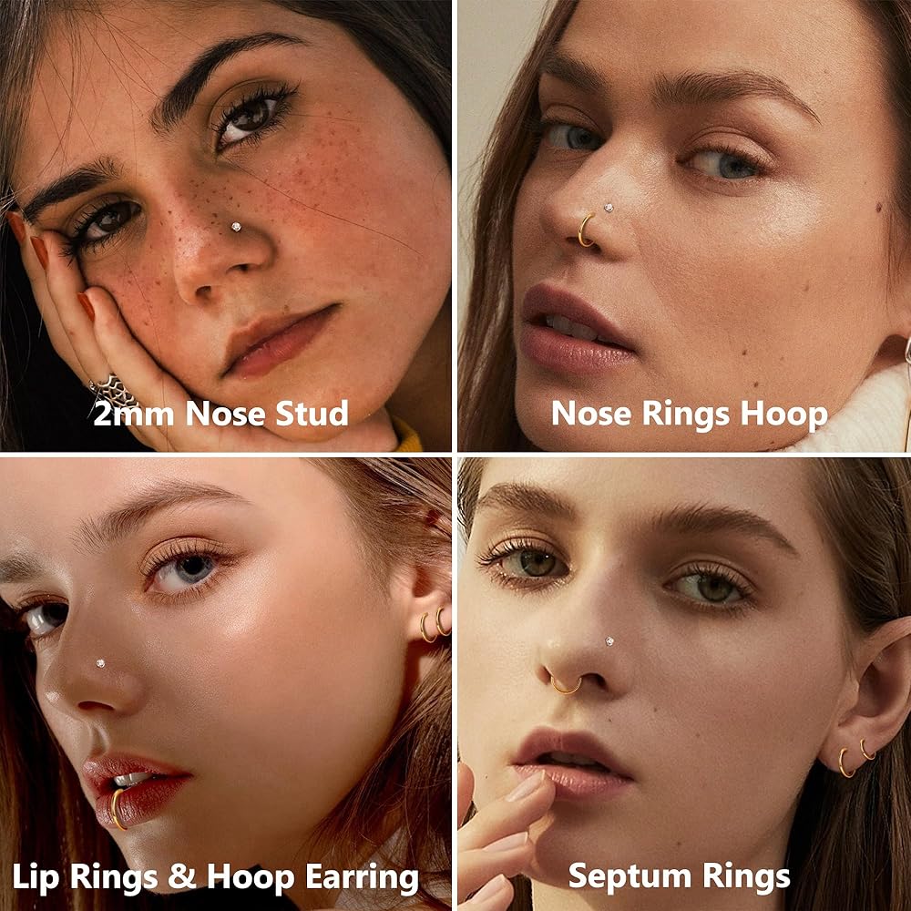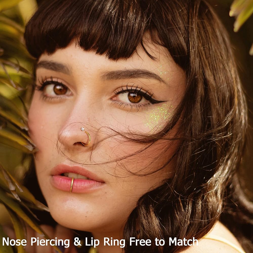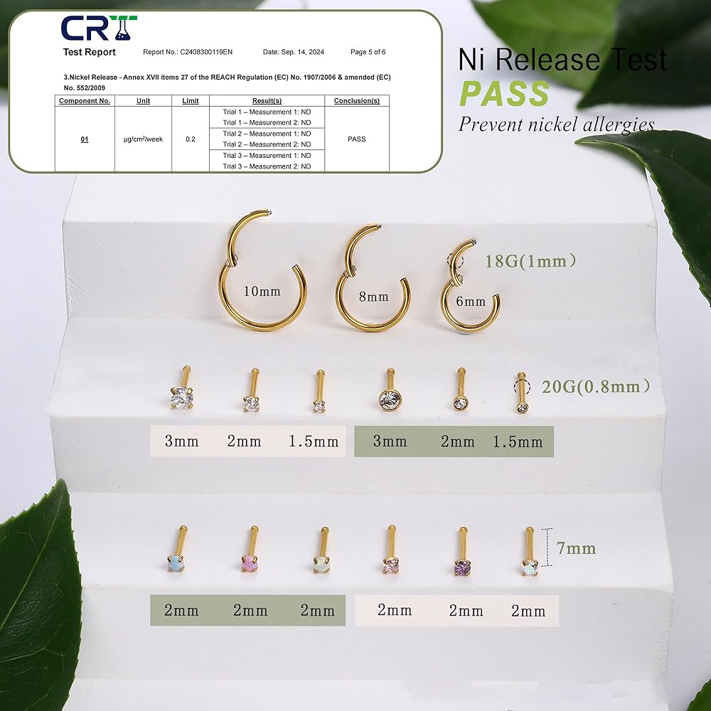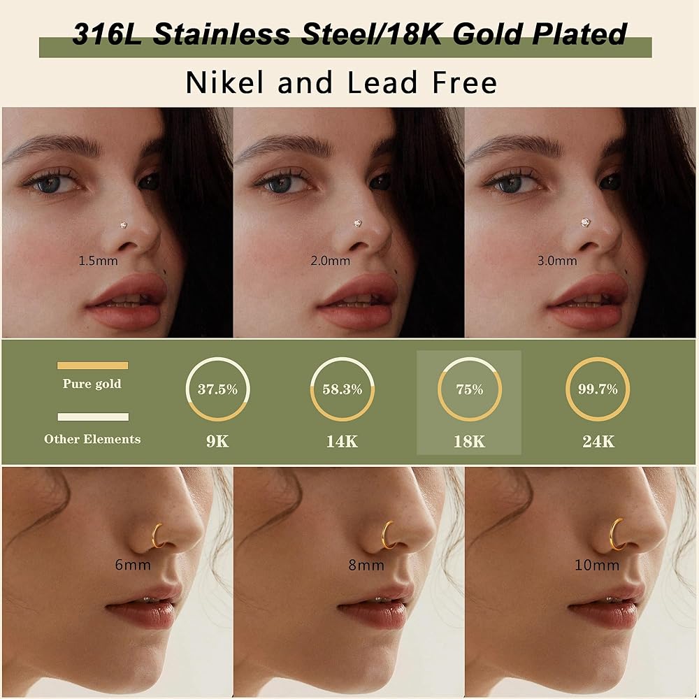• [مادة مضادة للحساسية] جميع مجوهرات ثقب الأنف مصنوعة من الفولاذ المقاوم للصدأ 316L عالي الجودة، وخالية من النيكل والرصاص، ولا تسبب الحساسية للبشرة الحساسة. مطلي بالذهب عيار 18 قيراط، ويتميز بمقاومة جيدة لتغيير اللون.