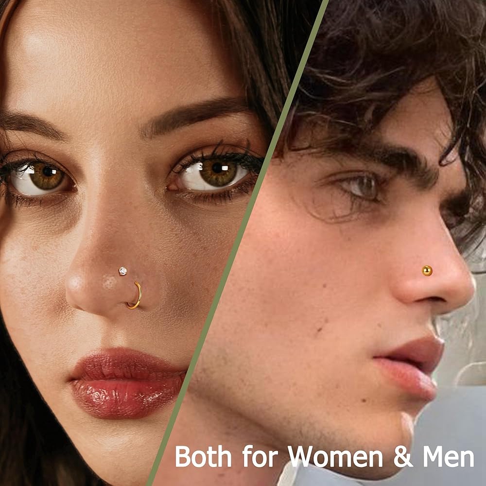 6-15 قطعة 20 جرام من حلقات الأنف 18 جرام للنساء والرجال 316L من الفولاذ المقاوم للصدأ حلقات أنف مفصلية، حلقات أنف مستقيمة على شكل حرف L، مجوهرات ثقب الأنف، فضي وذهبي (ذهبي-أوبال-مستقيم)