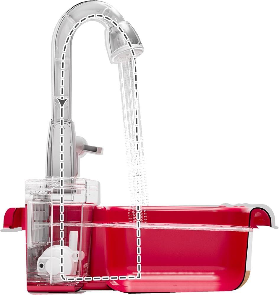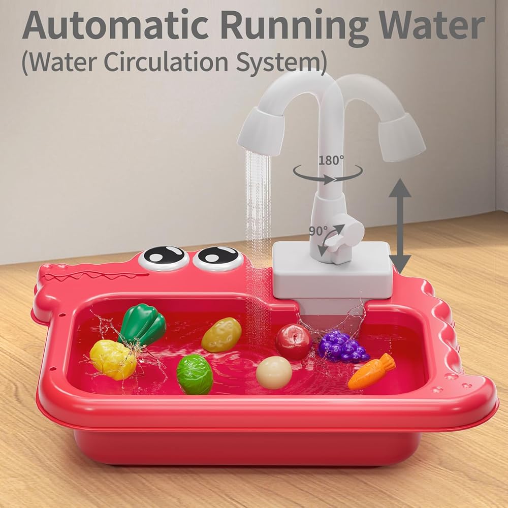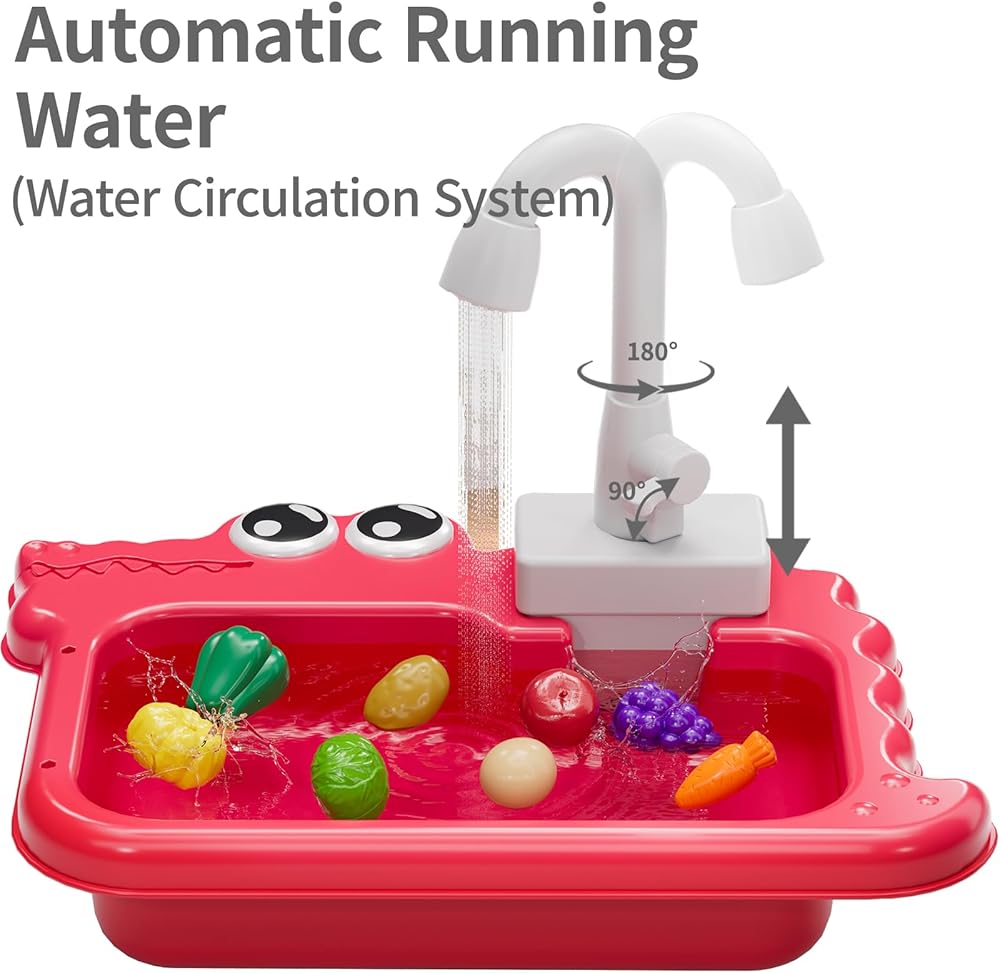 【حوض اللعب بمياه جارية】تأتي مجموعة ألعاب حوض اللعب مع صنبور حقيقي مطور ونظام إعادة تدوير المياه التلقائي للمساعدة في توفير المياه. إنها لعبة لعب مائية ممتعة للأطفال الصغار من سن 1 إلى 4 سنوات.