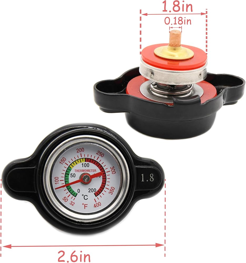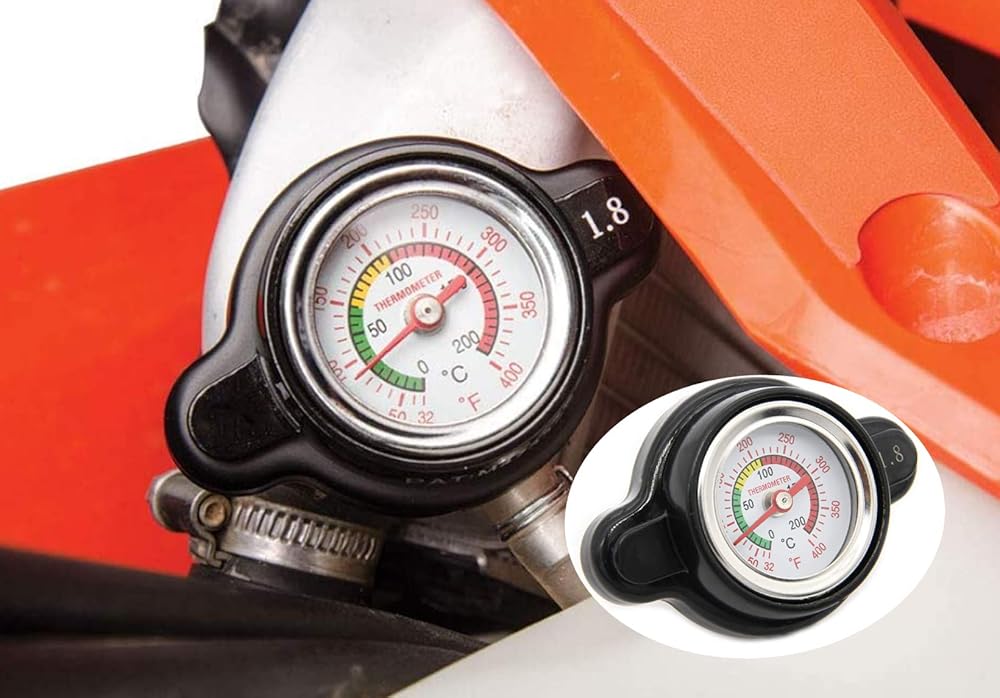 High-Pressure Temperature Gauge Radiator Cap Compatible with Honda Polaris Ranger Kawasaki Suzuki Yamaha Bike More Motorcycle ATV Compatible With: Honda : 1981-2007 CR125R/CR250R 1984-2001 CR500R 1983-2002 CR80R 1996-2002 CR80RB Expert 2003-2007 CR85R, CR85RB Expert 2007-2009, 2012-2019 CRF150R, CRF150R Expert 2013-2017 CRF250L 2004-2019 CRF250R 2004-2009, 2012-2013, 2015-2017 CRF250X 2002-2019 CRF450R 2005-2009, 2012-2017, 2019 CRF450X 2000-2007 XR650R Kawasaki : 1988-2006 KDX200 1997-2005 KDX220R 1991-1994 KDX250 2000-2003, 2009-2010 KL250 Super Sherpa 1985-2005 KLR250 1987-2018 KLR650 1994-1996 KLX250R 2006-2007, 2009-2010, 2012-2014 KLX250S 2009-2010 KLX250SF 1997-2008 KLX300R 2008-2010, 2012 KLX450R 1993-1996 KLX650, KLX650R 1995-2009, 2011-2019 KX100 1982-2005 KX125 1983-2007 KX250 2004-2018 KX250F 2006-2018 KX450F 1985-2004 KX500 1985-2003 KX60 2000-2009, 2011-2019 KX65 1985-2000 KX80 1987-1994 KX80 Big Wheel 2001-2019 KX85 Suzuki : 2000-2004 DR-Z400 2000-2007 DR-Z400E 2000-2009, 2011-2018 DR-Z400S 2005-2009, 2013-2018 DR-Z400SM 1981-2007 RM125 1982-2008 RM250 2003-2005 RM65 1983-2001 RM80 2002-2009, 2012 RM85 2003-2008, 2012 RM85L 1989-1998 RMX250 2004-2018 RMZ250 2005-2018 RMZ450 Yamaha : 1991-1997 WR250 2001-2009, 2011-2013, 2015-2018 WR250F 2008-2018 WR250R 2008-2011 WR250X 1998-2000 WR400F 2003-2009, 2011-2018 WR450F 1981-2019 YZ125 1982-2019 YZ250 2001-2019 YZ250F 1989-1990 YZ25