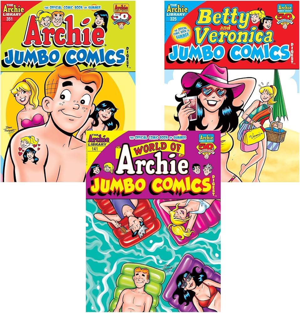 The Archie Comics Summer Fun Special Digest 3-Pack includes 3 different Archie Comics Digests themed for late Spring/early Summer. Each pack contains Archie Jumbo Comics Digest #351, World of Archie Jumbo Comics Digest #141, and Betty & Veronica Jumbo Comics Digest #325. The cover price for each Digest comic is $9.99. So, you are getting a $29.97 value!