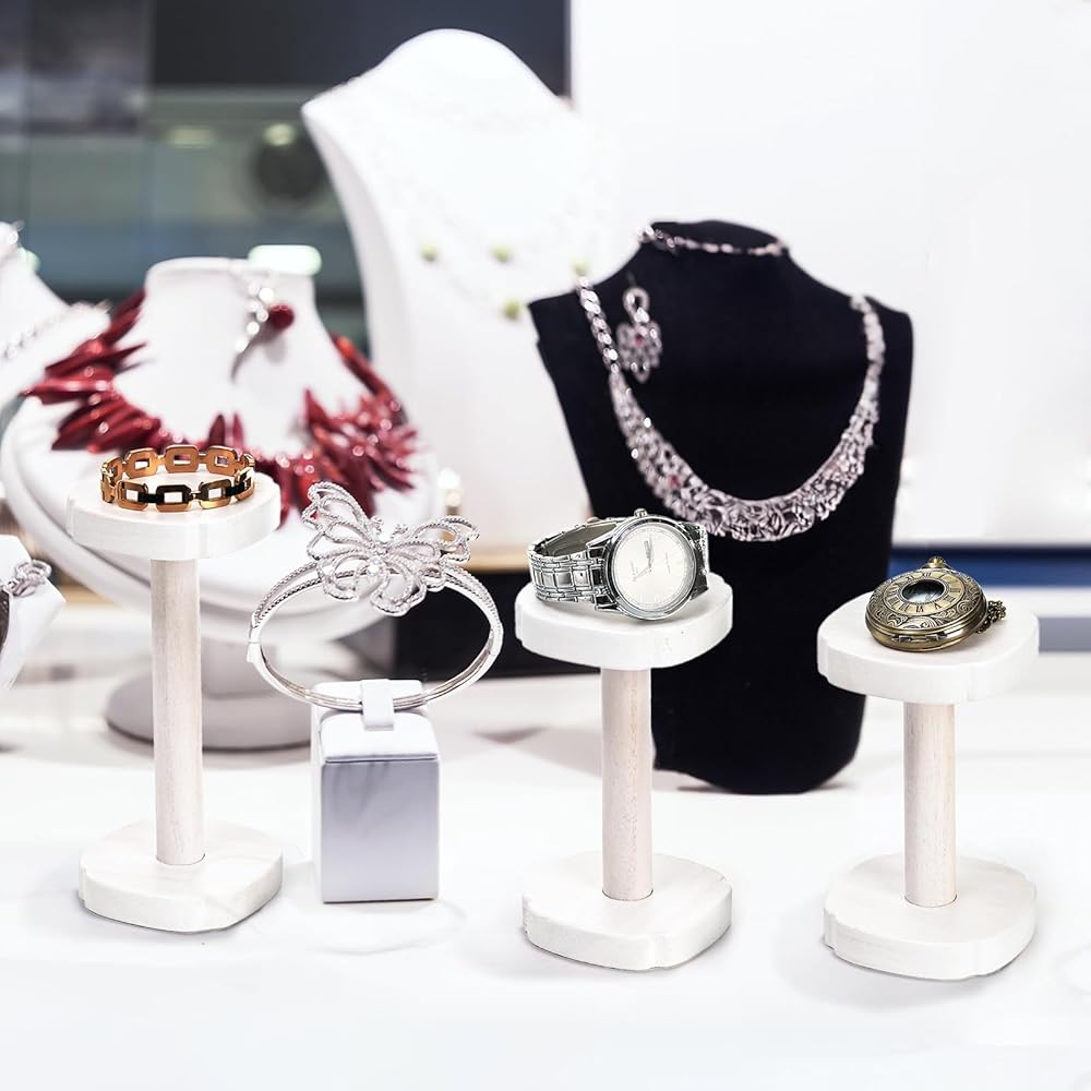ستحصل على 6 قطع من رافعات عرض المجوهرات، وهي مصنوعة من الخشب الصلب والمتين، ومطلية باللون الأبيض، وتساعد على خلق ميزة جذابة لمنتجاتك.