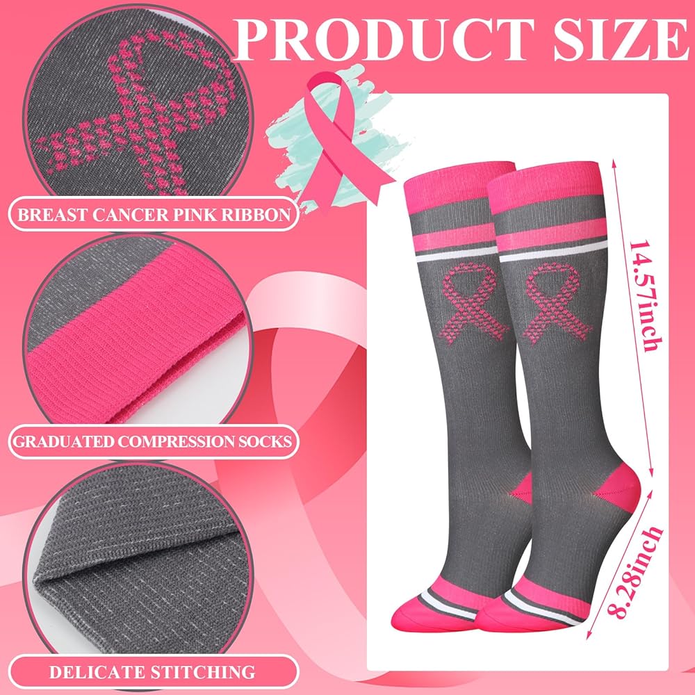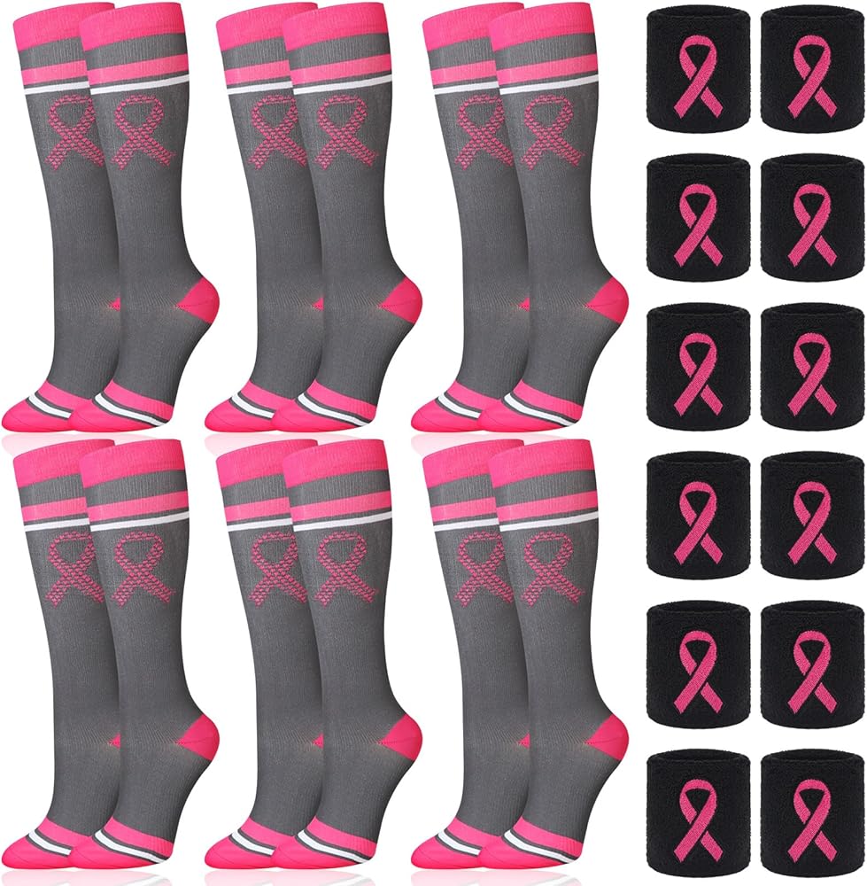 6 Pairs pink breast cancer awareness socks