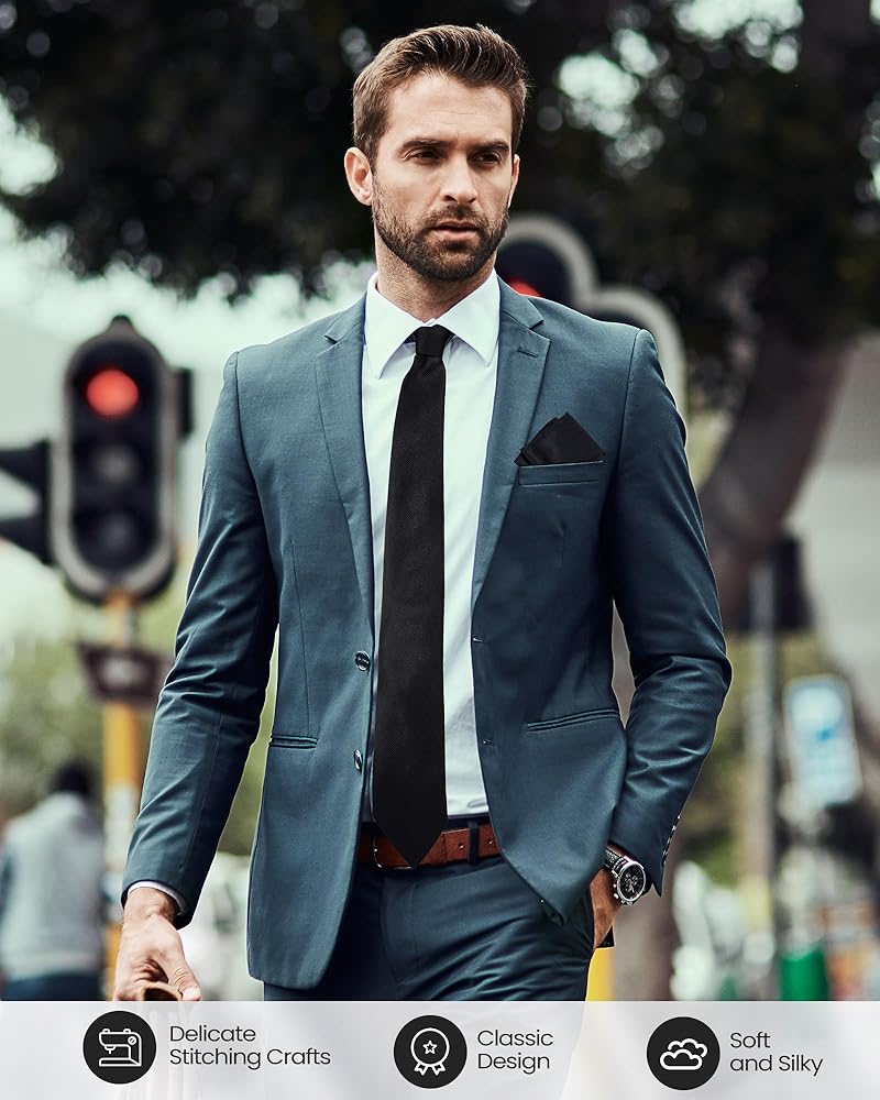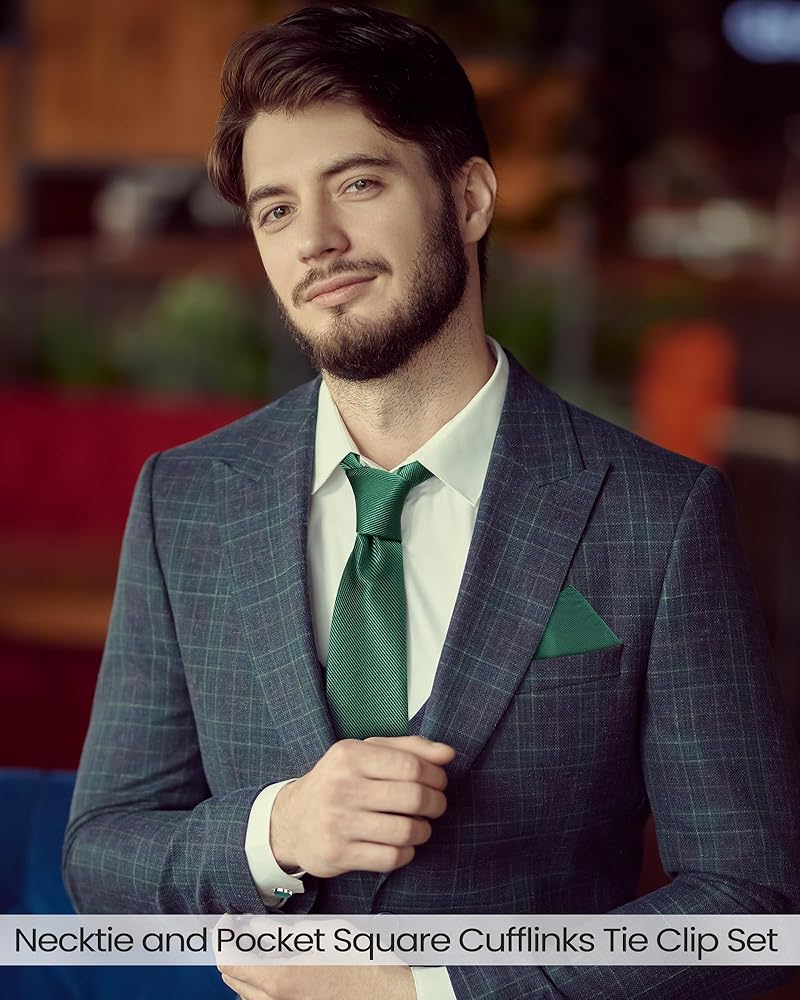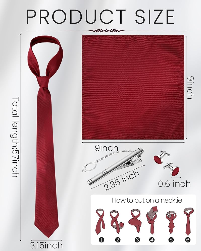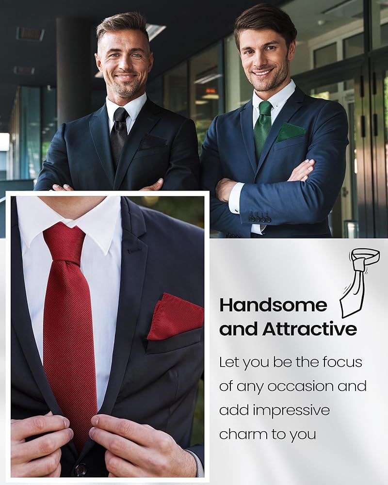 • Color Variety: available in 4 distinctive colors, these accessories are suitable for various occasions; The set includes black, burgundy, navy blue, and emerald green neckties and pocket squares; Match your suit with the appropriate color and enhance your attire
