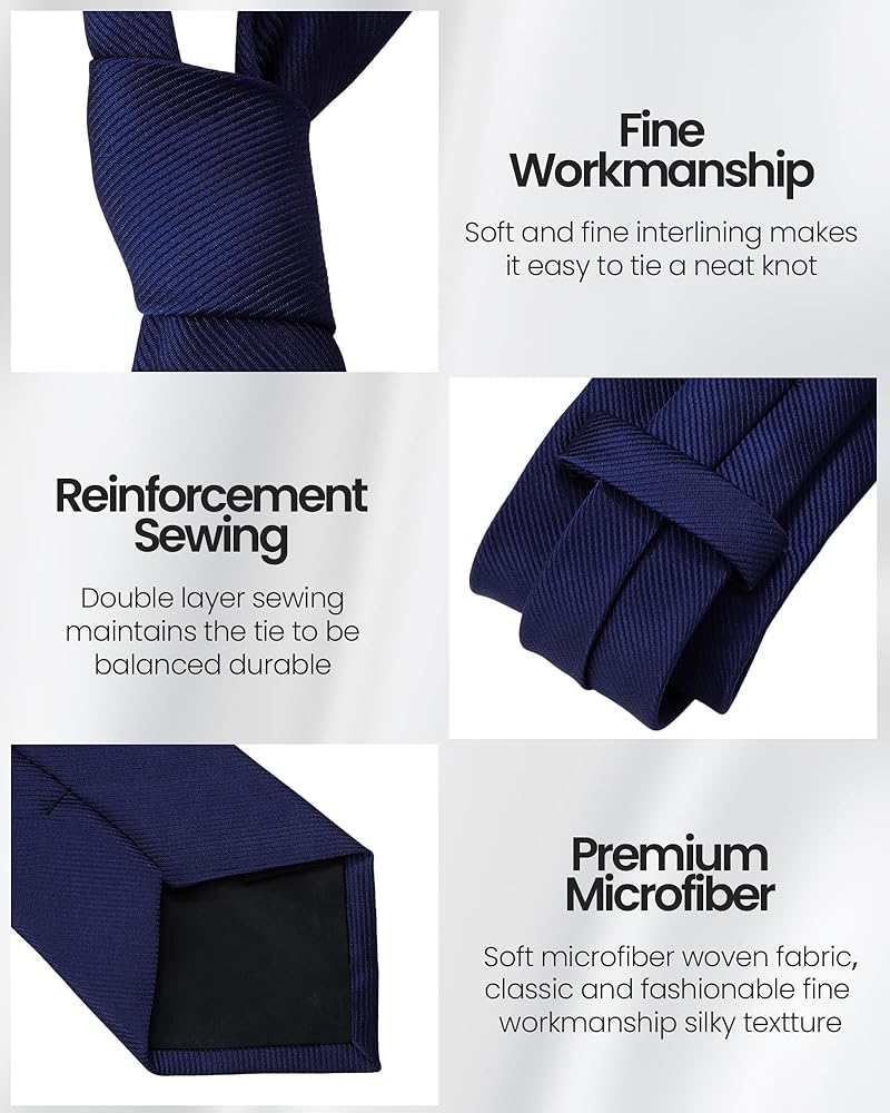 • Quality Material: the neckties and pocket squares are made from polyester fiber and satin, offering a soft and luxurious feel; The tie clip is made of durable metal that ensures longevity and keeps the tie in place efficiently