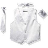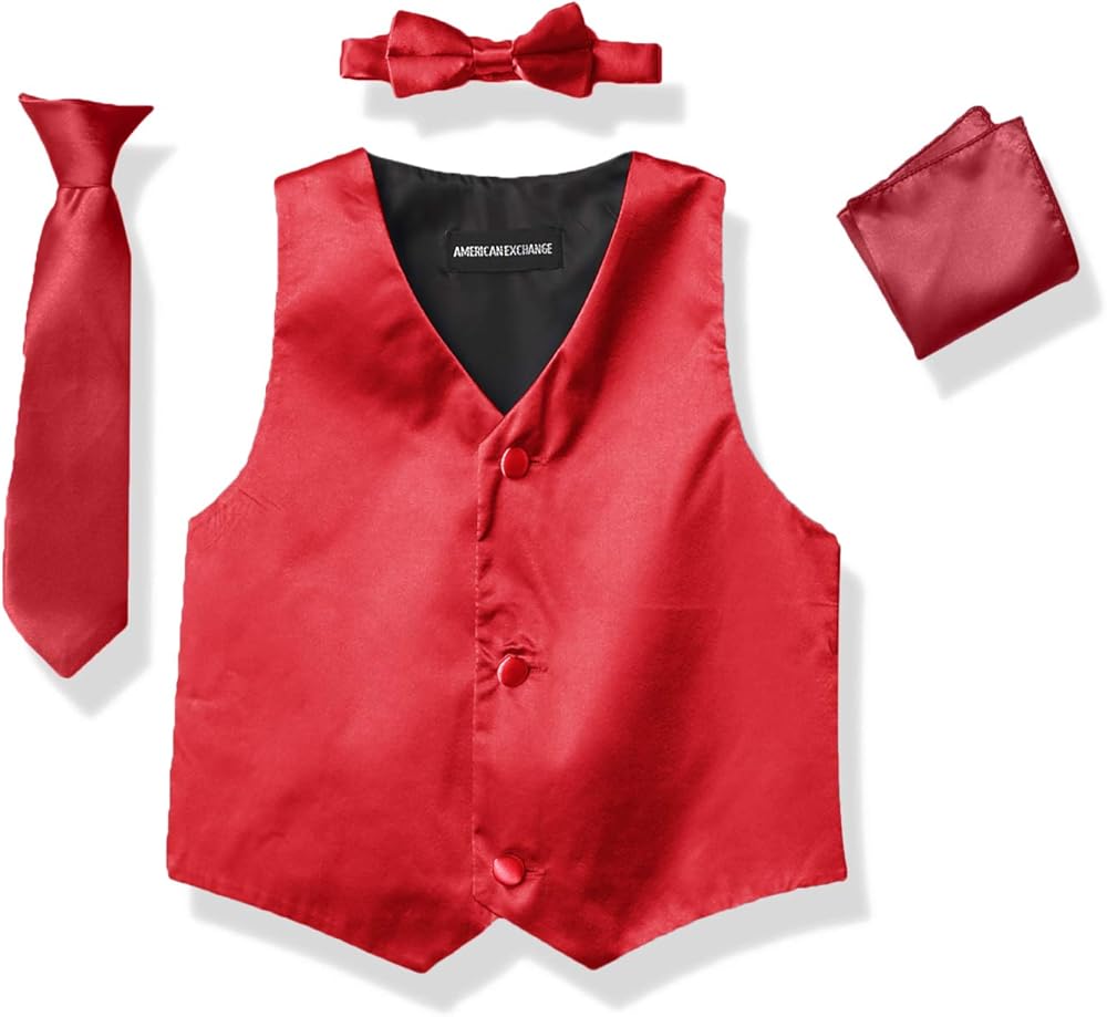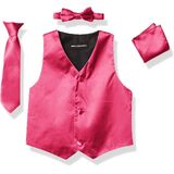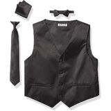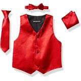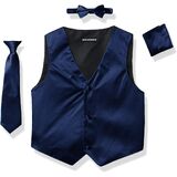 Made from fine satin, this 4 piece formal vest set by AXNY is the perfect buy for the occasion. Available in an array of colors, the set includes the vest, tie, bowtie, and hanky. You little one will turn heads with this vest set combo.