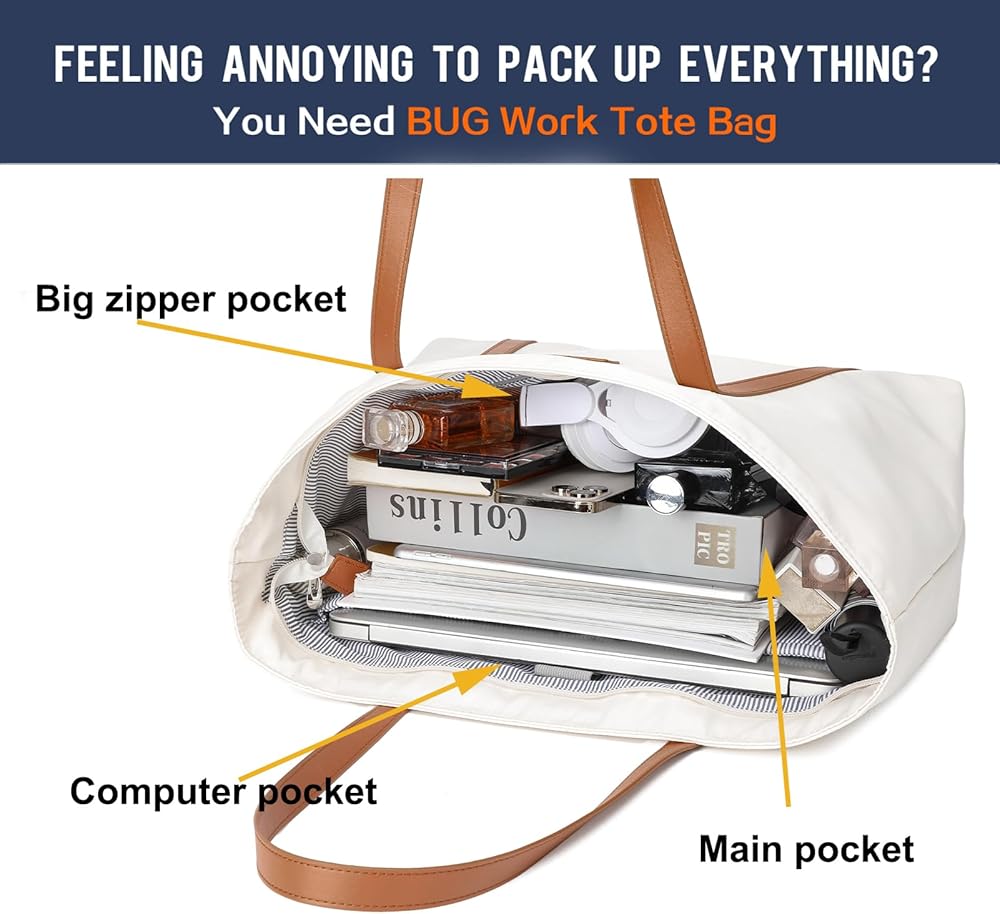 {حقيبة اليد الكبيرة جدًا} هذا المنتج غير مخصص للاستخدام من قبل الأطفال بعمر 12 عامًا أو أقل. يمكن لحقيبة اليد النسائية استيعاب ما يصل إلى 15.6 بوصة من أجهزة الكمبيوتر المحمول - الحقائب المخصصة للنساء ذات الحجم المحدد هي الطول السفلي * العرض السفلي * الارتفاع = 16 × 7 × 13 بوصة، وانخفاض المقبض 10 بوصة. يرجى الانتباه إلى حقائب اليد، فهذه حقيبة كبيرة جدًا، وحجم حقائب اليد أكبر من المتوقع.