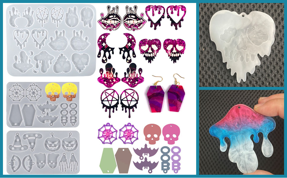 • تصميم كلاسيكي لموضوع الهالوين: تم تصميم قوالب الأقراط المصنوعة من الراتنج بالأشعة فوق البنفسجية مع قوالب فريدة من نوعها لعيد الهالوين وتحتوي على 34 نمطًا فريدًا، جمجمة، يقطين، شبكة عنكبوت، خفاش، نعش، شبح، مخلب يد وموضوع دم متساقط، مثل القمر، الفطر، القلب إلخ. إنه رائع لصنع أقراط جميلة وملفتة للنظر، وسلاسل المفاتيح، والقلادة، والقلادة، وديكور الحقيبة، وعلامة صندوق الهدايا، وتعليق الحائط، وبطاقات الرغبات، وزخارف دعائم الصور، وأجراس الرياح والعديد من المشاريع الفنية والحرفية الأخرى.