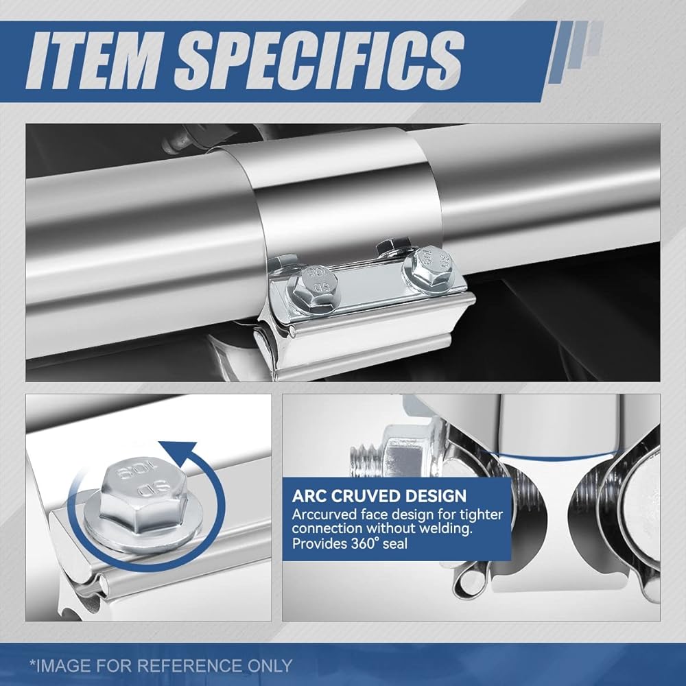أداء رائع - يأتي مع مجموعة من [2] مشابك شريط عادم مصقولة مع حشية فولاذية ومسمار وصمولة، وتصميم I-Block وتصميم وجه منحني لاتصال أكثر إحكامًا لتوفير ختم 360 درجة، يمكن أن يجعلك تربط مكون نظام العادم في طريقة فعالة.