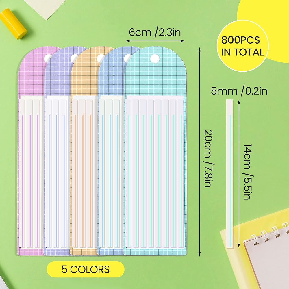 أحدث 800 قطعة من أقلام تحديد الصفحات ذات الشرائط الطويلة، وعلامات تبويب الفهرس مع خطوط، وعلامات تبويب أعلام الصفحات الطويلة الشفافة لقراءة وتدوين الملاحظات، 5 مجموعات