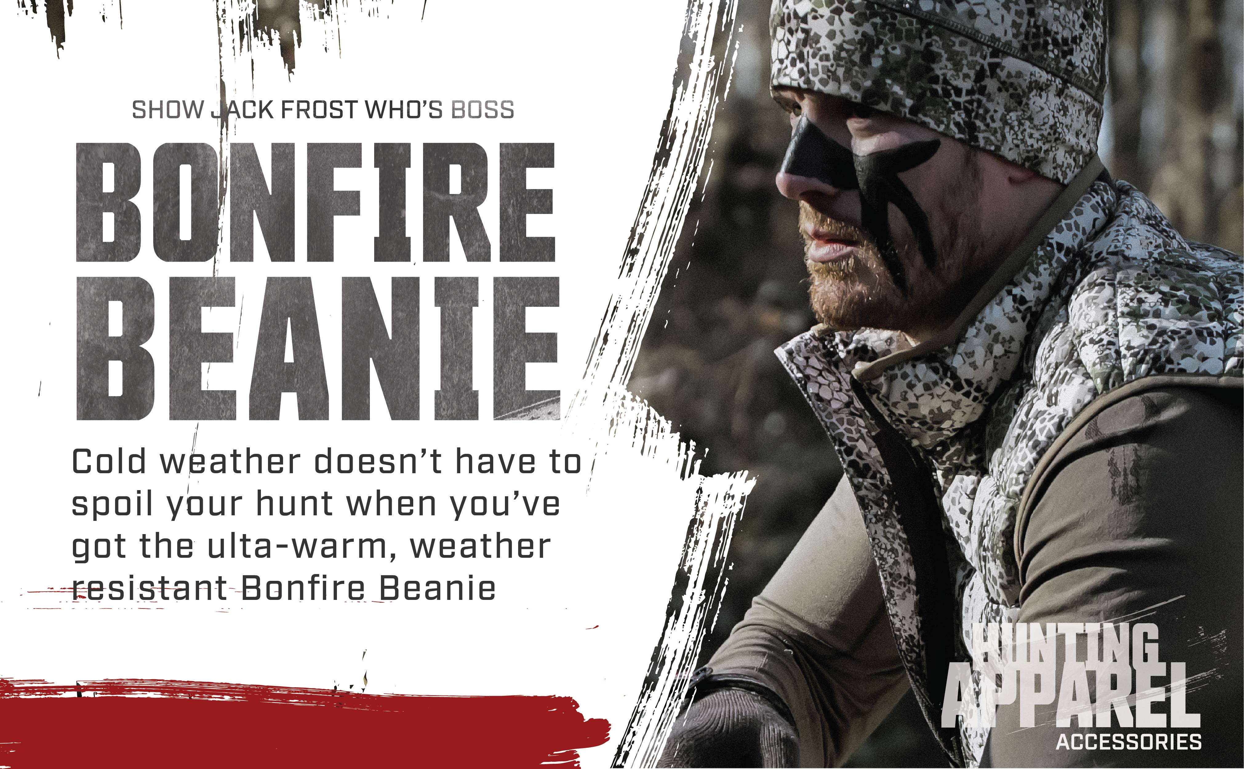 • إخفاء مريح - قبعة Bonfire Beanie قابلة للتمدد ومقاومة للماء وجيدة التهوية لتبقيك مرتاحًا ومخفيًا في صيدك القادم.