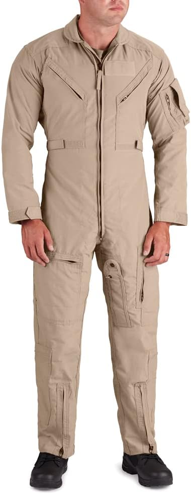 It keeps you safe without weighing you down. The Propper CWU 27/P Aramid Flight Suit is built to military specification YACL-WP PD 99-01 R as worn by all U.S. flight crews. Our suit features a two-way zipper with pull, six primary pockets, an adjustable waist belt with hook and loop closure, felled seams, and a bi-swing back.