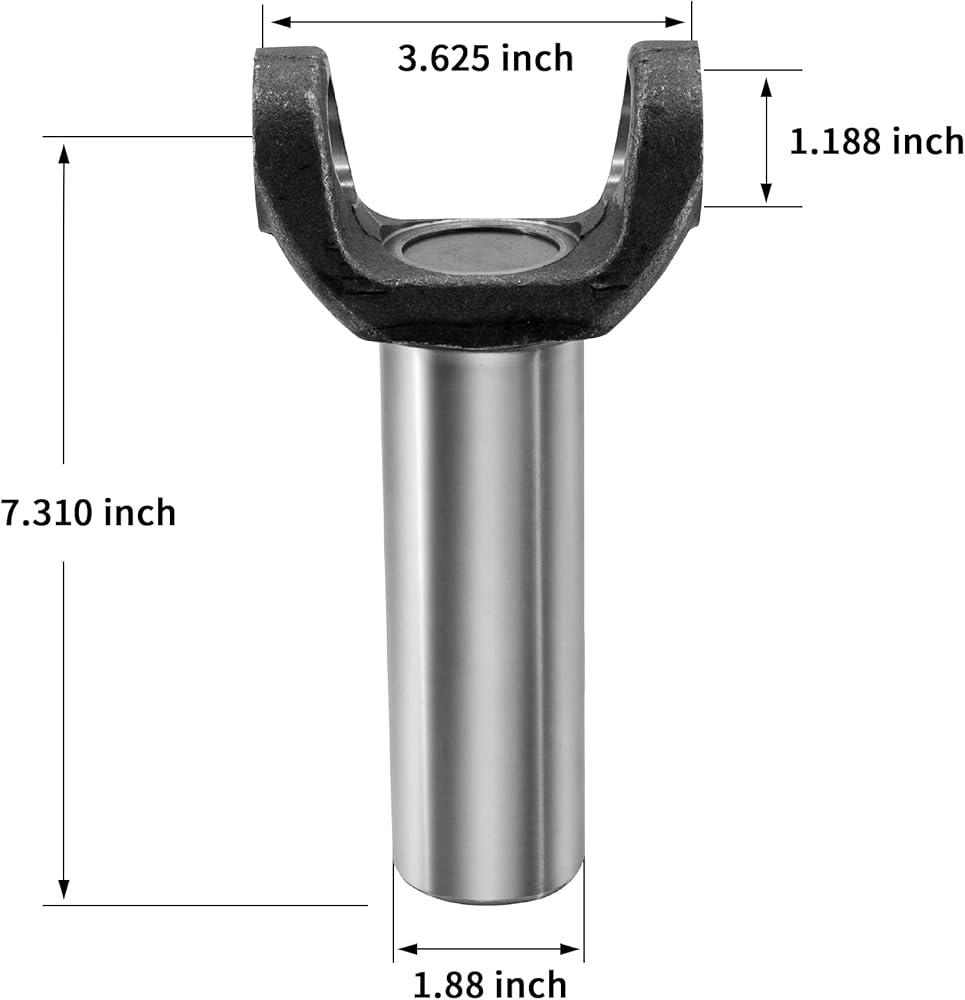 Specification: Universal Joint Width (L): 3.625'' Bearing Cap Diameter (D): 1.188'' Center Line to End of Spline (J): 7.31'' Hub Diameter (R): 1.885'' Spline Outside Diameter: 1.39'' Number of Spline: 30 Based on 31 Spline