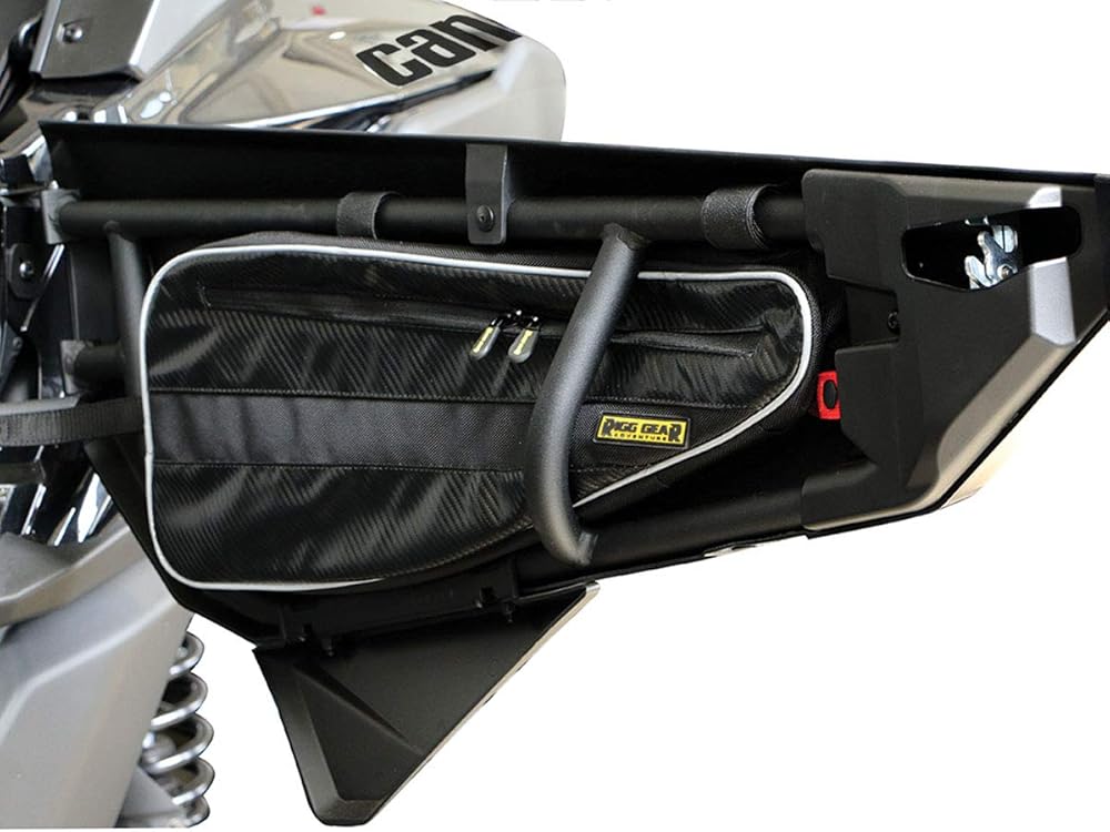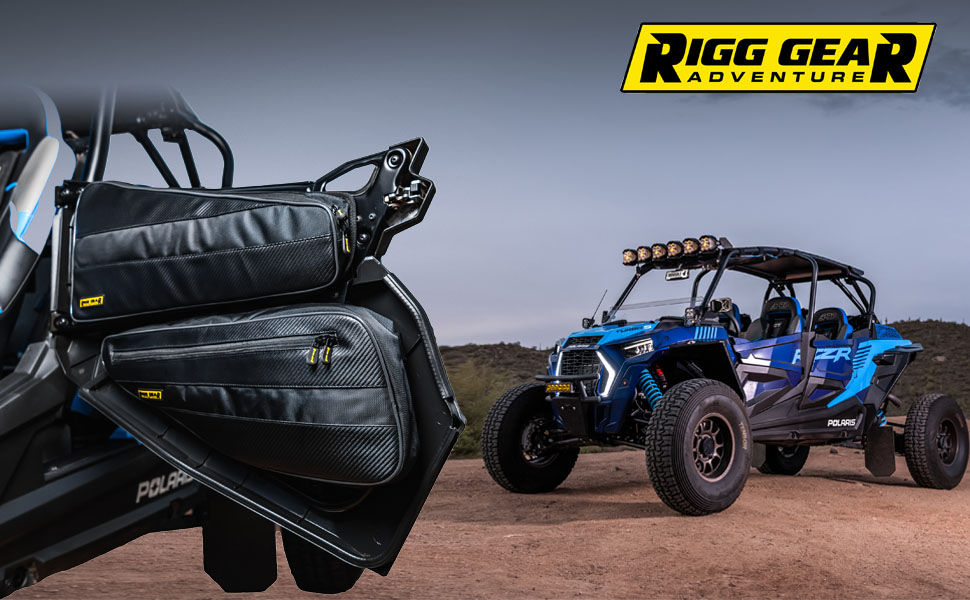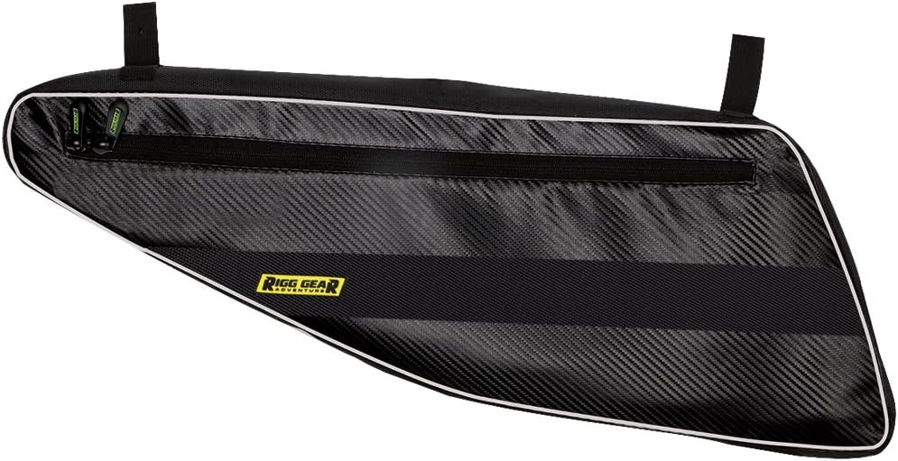 Mounts using front factory door holes and included fasteners Fits Polaris RZR models '14-'23 XP 1000 Sport, Turbo, Trail; XP4 1000 Turbo, Trail, '14-'19 900, 4 900; '21-'23 Trail 900, Trail S 900 Sport. Can fit 50” trail models if additional holes are drilled. Largest capacity upper door bag for Polaris RZR. Front knee pad for comfort and safety is also removable to maximum storage. One large zippered storage compartment. Top quality, water resistant Tri-Max Ballistic Nylon with Fibertech accents. Reverse coil zippers help keep out dust and dirt. Rubber coated oversized zip pullers operate easily with gloves. Works with optional Front Lower Door bags RG-001L. Dimensions: 23.5”L x 11”W x 2”D Holds 4.5 liters per side. Sold as a pair Left and Right.