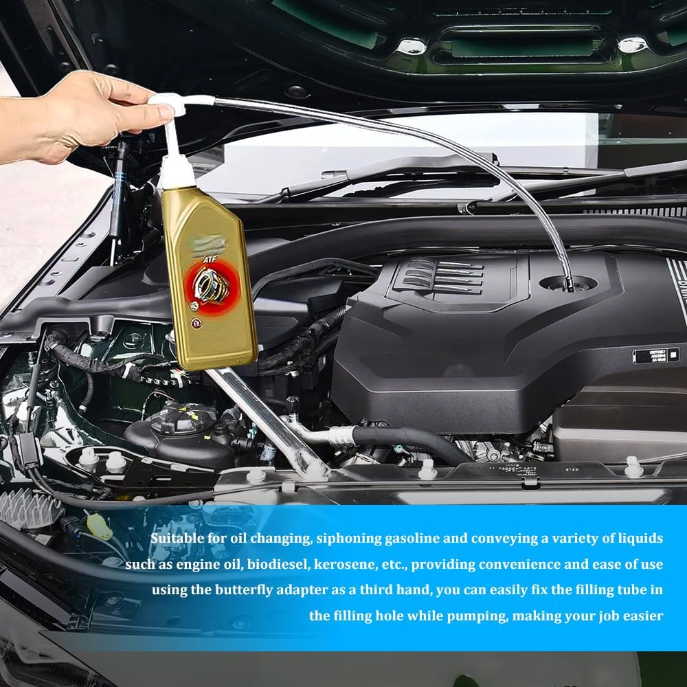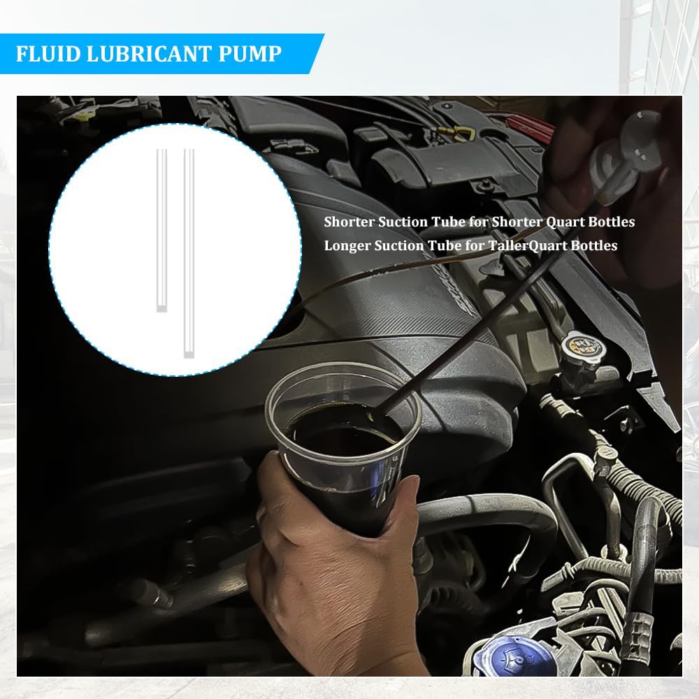 • [Convenient design] : The flexible hose of the fluid lubricant pump can enter some narrow or difficult to access areas, convenient to switch between different liquids, to achieve efficient and fast flow diagram transmission, providing convenience. The automotive fluid pump equipped with two straws, can be adapted to the length of tall bottles and short bottles, each use of gently pressed pump can reach the bottom of the bottle, availability is strong.