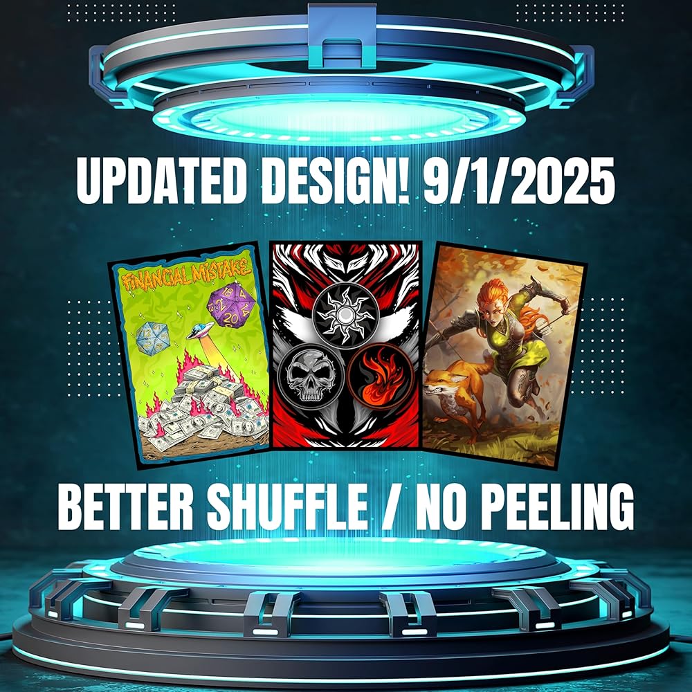 - ✅ متوافقة مع بطاقات Magic The Gathering وPokemon وLorcana. لم يتم إنشاء هذه الأكمام بواسطة Magic The Gathering أو Pokemon أو Disney.