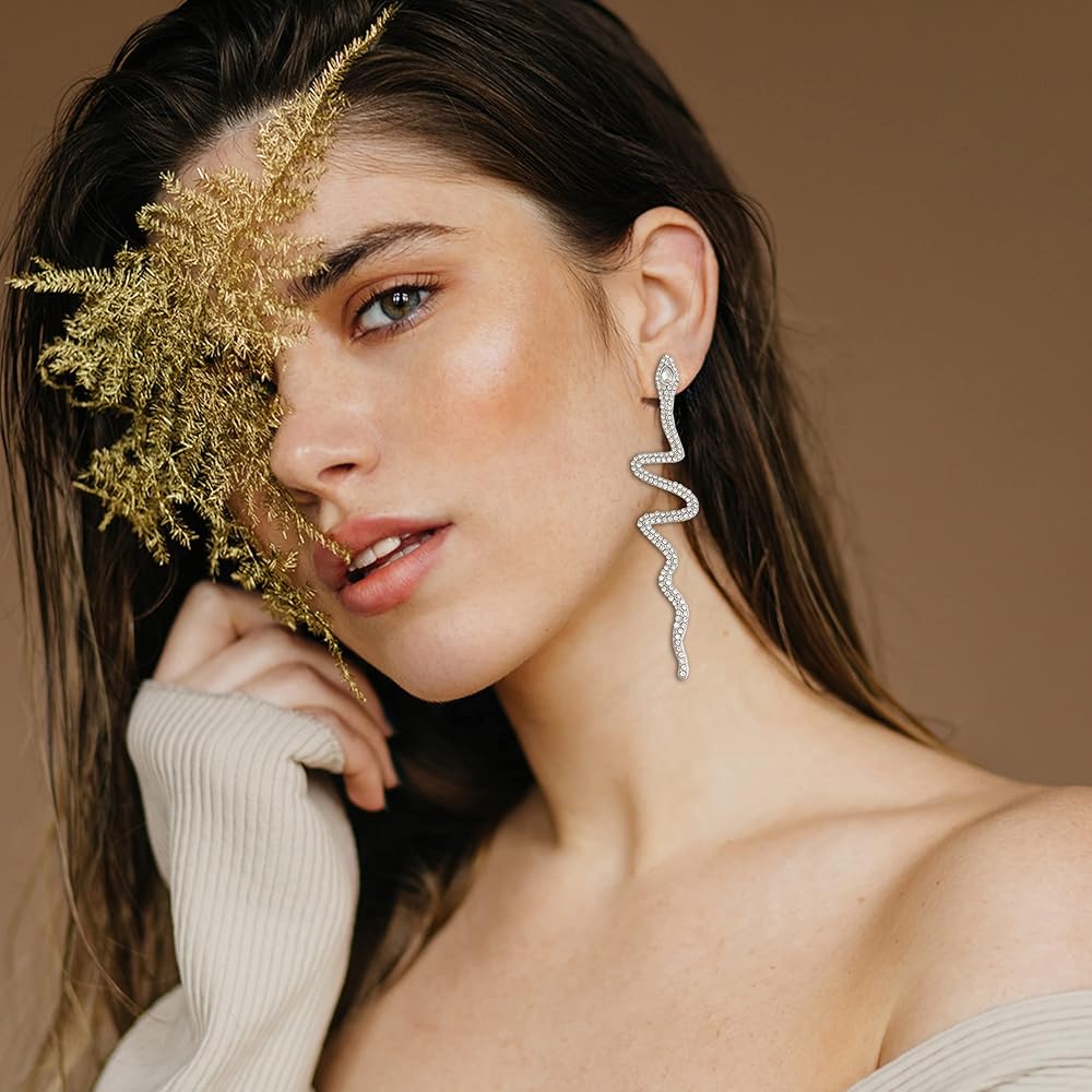 SNAKE EARRINGS FOR WOMEN: Weight:30g, size:10x2cm/3.9x 0.8in. It made of alloy. Superior quality keep color not fade.Add special touch to your daily look.These beautiful snake- shaped earrings are made of alloy. Exquisite workmanship makes the surface of snake earrings very smooth and shiny, increasing strength and durability.