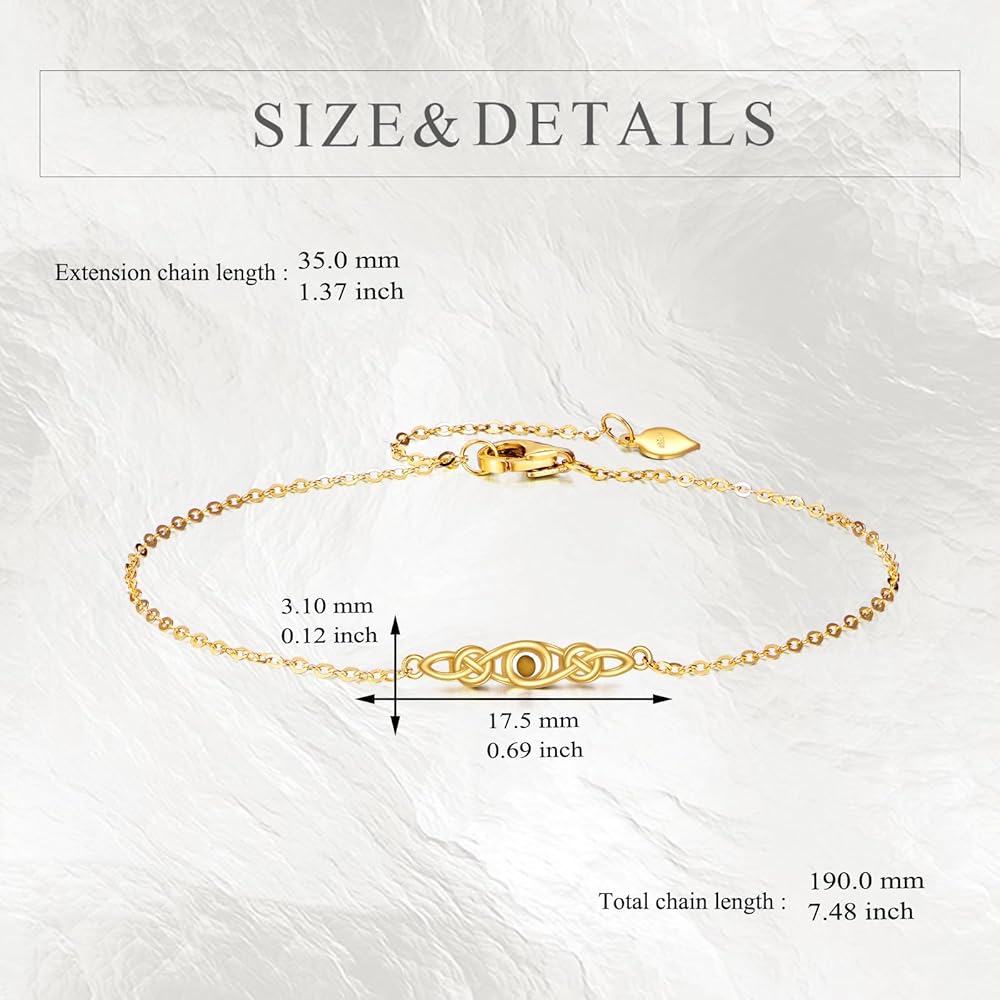 • ❤SIZE❤: These 14k celtic knot bracelet is the perfect size at 0.69*0.12 inch (17.5*3.1 mm), and the 14K real gold chain is 7+2 inches long.
